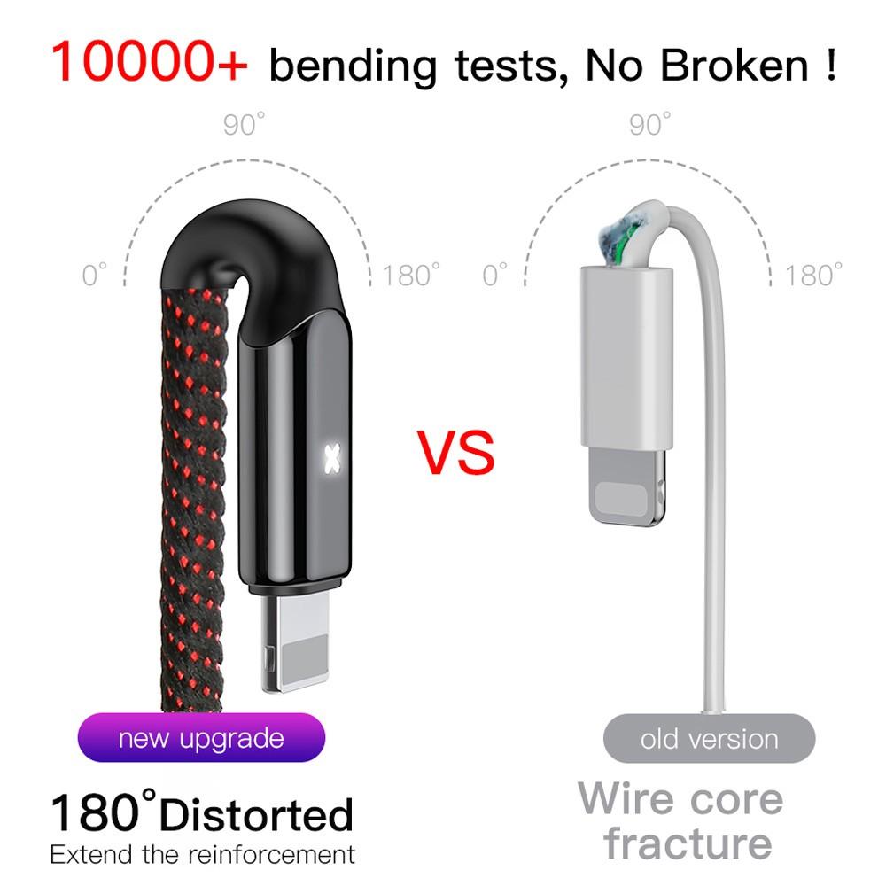 Cáp sạc Baseus Baseus X- shaped Light chân Lighting và Type C (Sạc nhanh, Sợi Carbon Siêu Bền, Led đổi màu khi sạc đầy) Tính năng cơ bản Cáp Baseus X- shaped Light chân Lighting