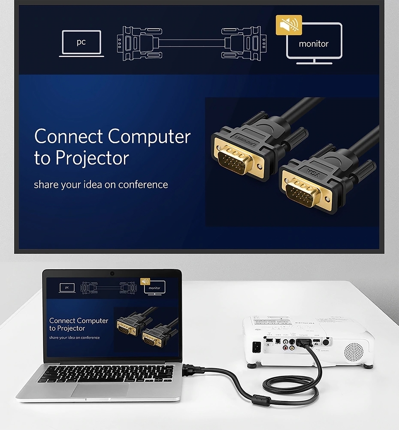 Cáp VGA Ugreen chính hãng chuẩn 3C+6 3C+9 đầu mạ vàng dài 1.5M 3M 5M 8M 10M 12M 15M 20M 30M
