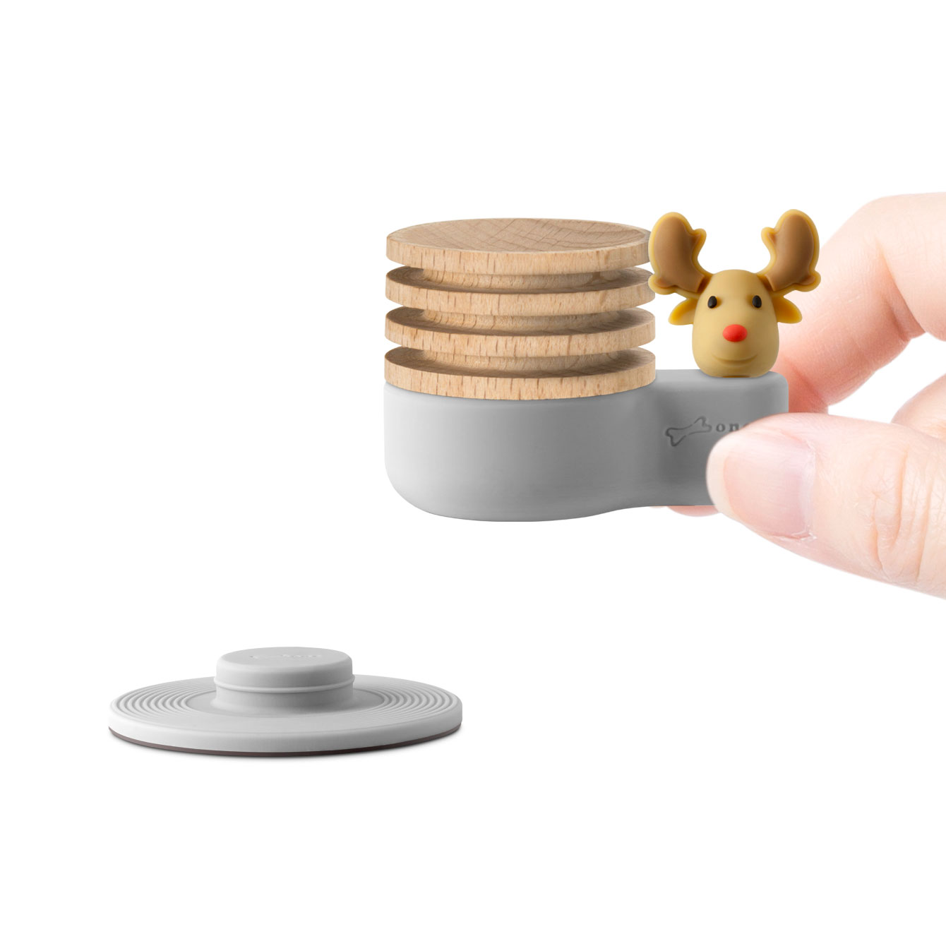 Các lỗ chân lông của gỗ sồi hấp thụ tinh dầu, hương thơm sẽ khuếch tán từ từ. Phần đế có lớp keo nano để giữ phần gỗ cố định (có thể giặt và dán