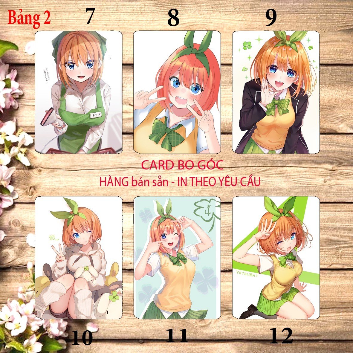 ✨Card hình yotsuba Nakano Gotoubun no Hanayome 6 ảnh khác nhau/ Thẻ card yotsuba Nakano nhà có 5 nàng dâu