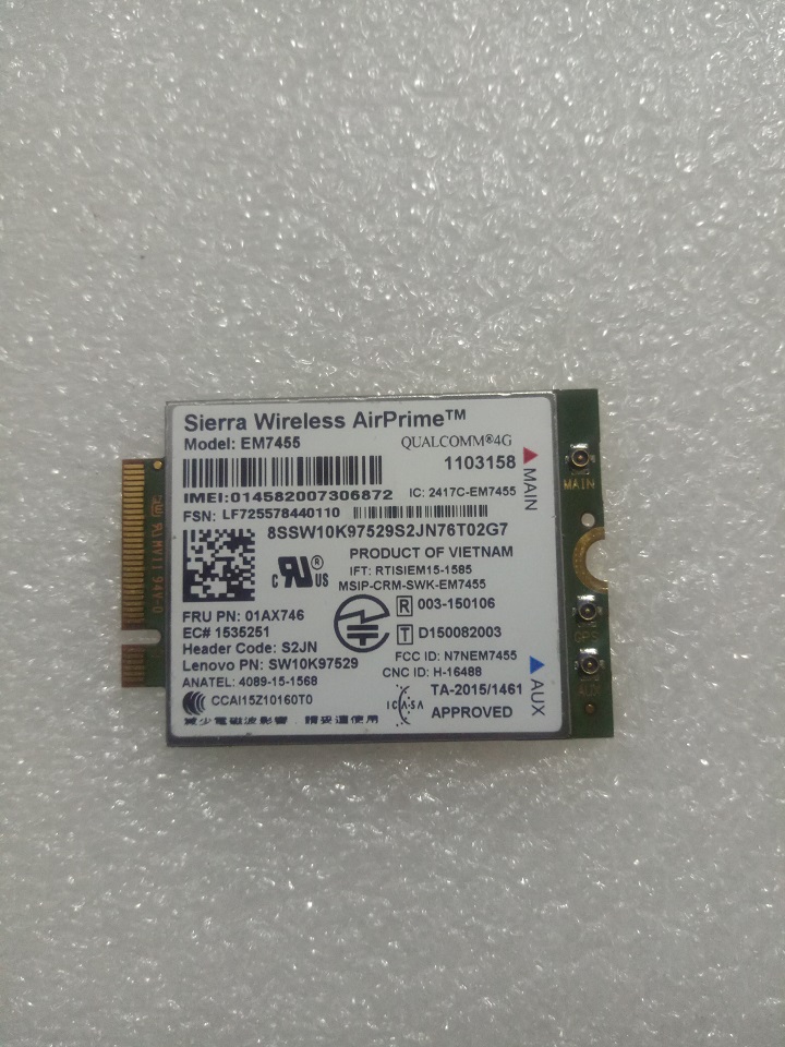 Card WWAN 4G Lenovo ThinkPad EM7455 4G LTE dùng cho laptop Lenovo Thinkpad L470, L570, P51, P70,P71,T470,T470p,T570,X270 - Hàng chính hãng Card wwan 4G Lenovo ThinkPad EM7455 4G LTE Mobile Broadband (FRU PN: 01AX746) -