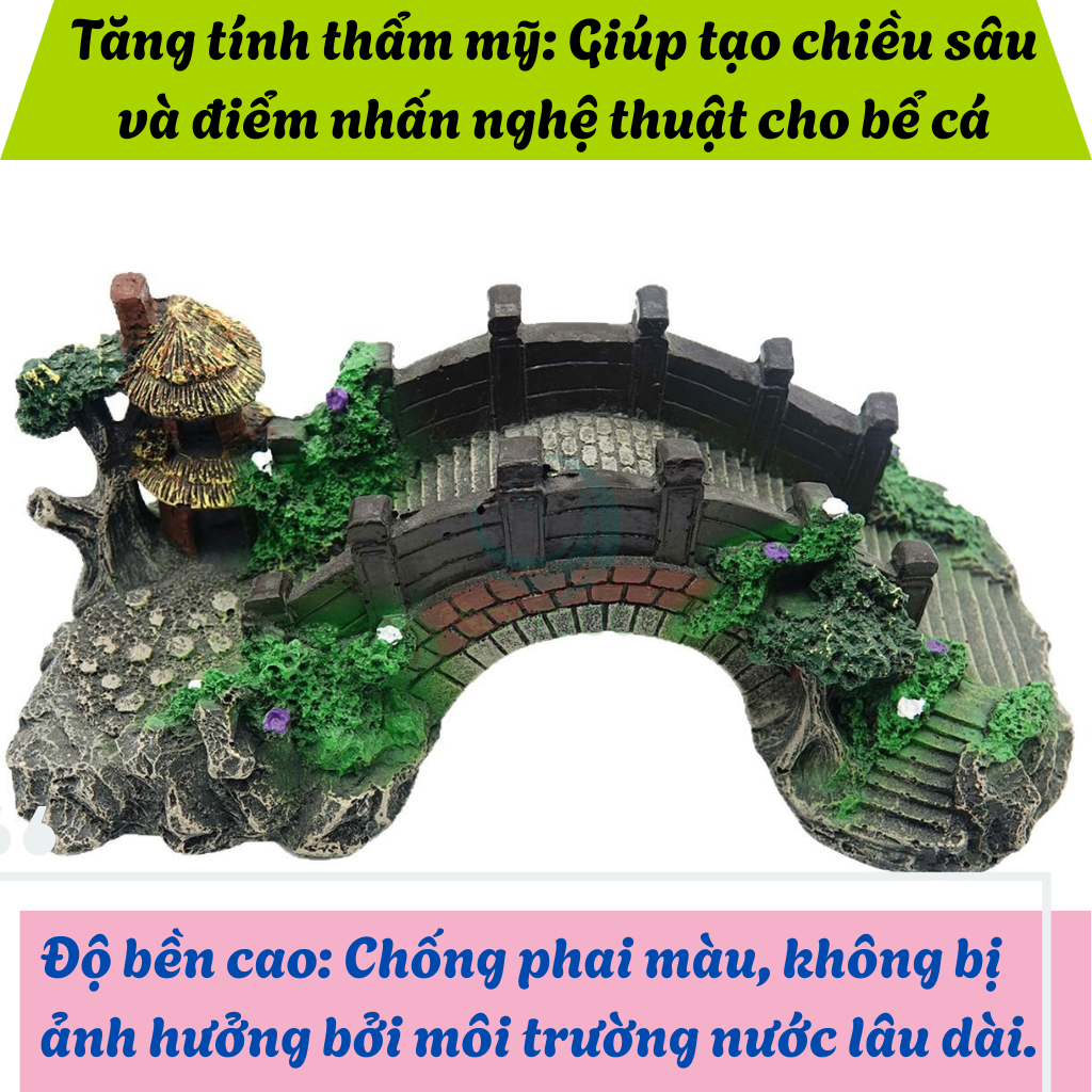 Mua tại TiktokMÔ TẢ SẢN PHẨM: Mang nét cổ điển Á Đông với hình ảnh chiếc cầu cong mềm mại và căn chòi nhỏ bên núi đá, mô hình "Cầu Trang Trí Hồ Cá" là lựa chọn hoàn hảo để tạo điểm nhấn sinh động cho bể cá hoặc tiểu cảnh phong thủy. Sản phẩm được chế tác từ nhựa resin bền bỉ, chịu nước, an toàn cho sinh vật thủy sinh. Với chi tiết sống động, gam màu nổi bật và kiểu dáng tự nhiên, đây là món phụ kiện không thể thiếu cho bất kỳ bể cá cảnh nào. ƯU ĐIỂM NỔI BẬT: