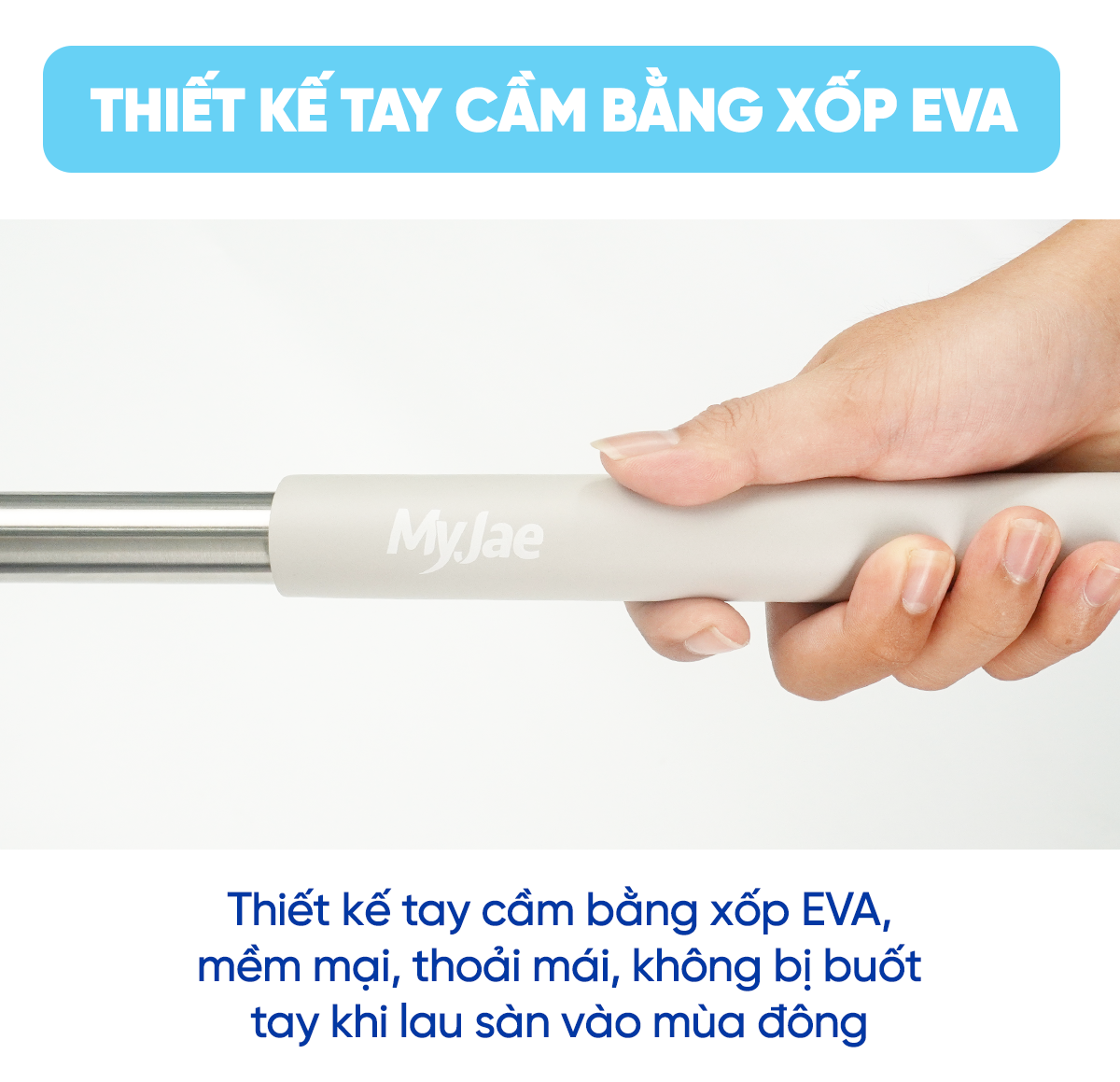 • Thiết kế tay cầm bằng xốp EVA, mềm mại, thoải mái, không bị buốt tay khi lau sàn vào mùa đông.