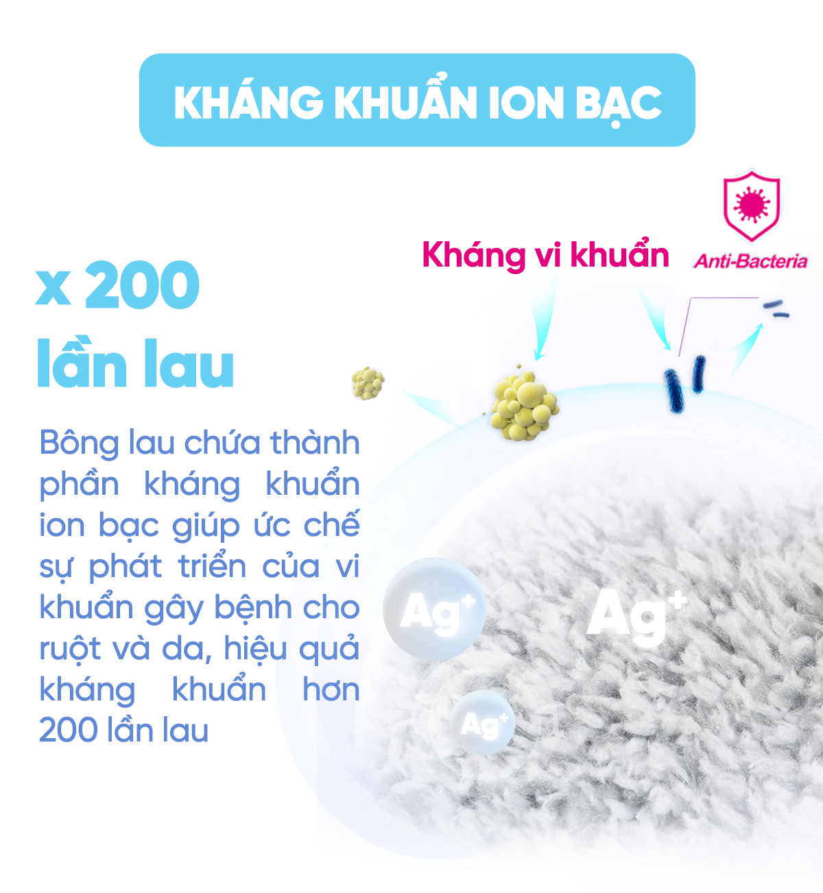 ĐẶC ĐIỂM NỔI BẬT: Chất liệu cao cấp, an toàn cho sức khỏe Cán bằng inox 201 có tay cầm bọc nhựa PP chắc chắn Bông lau bằng sợi Microfiber thấm hút nước tốt Thiết