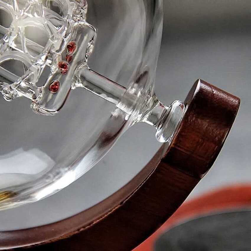 Chai Đựng Rượu Thủy Tinh 1500ML địa cầu kèm đế gỗ - Vỏ Chai Rượu Đẹp (E18)