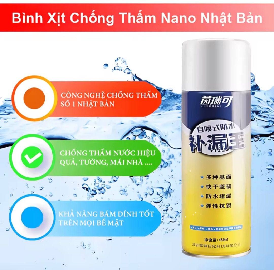 Siêu bền siêu rẻ siêu chất lượng với bộ bình xịt chống thấm đa năng siêu tiện dụng mẫu mới nhất chất lượng Tiết kiệm thời gian xử lý nhà cửa, trần mái, bể bơi, bể nước, bê tông bị thấm dột, chỉ 5-10s xịt vào chỗ thấm là xong- Sản phẩm được sản xuất theo dây chuyền công nghệ tiên tiến , đảm bảo an toàn và chất lượng.- Bình xịt chống thấm sử dụng được trên các vật liệu khác nhau như: nhựa, bê tông, đá Marble, tường xi măng, gạch men, mái ngói, tôn, vết nứt giữa hai vật liệu khác nhau…- Cực kỳ chắc, không thể rò rỉ, Chai xịt gắn đồ vật giải quyết