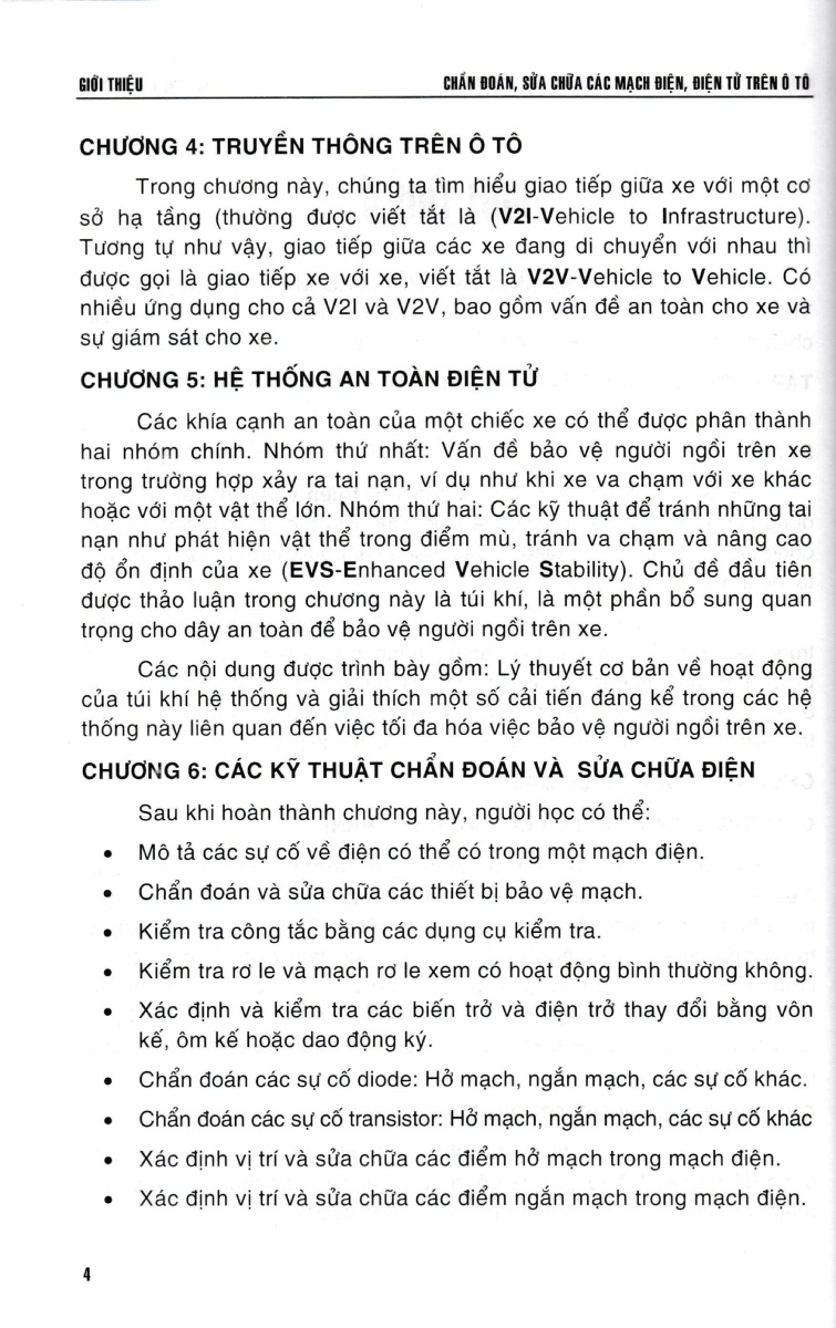 Phần 1: Gồm 5 chương (Chương 1-5) thiên về lý thuyết, chủ yếu dùng cho sinh viên các trường Đại học, Cao Đẳng chuyên ngành Cơ khí động lực (Ô tô) tính toán hiểu rõ các mạch cảm biến và đo lường và trong ô tô, hệ thống truyền thông và an toàn.