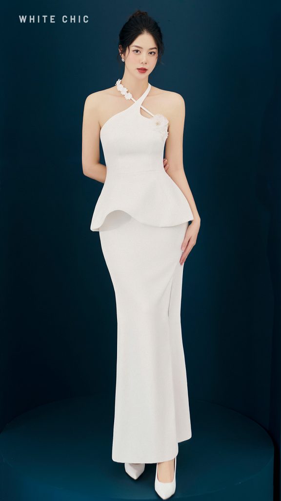1. Thông tin sản phẩm Sự phối hợp nhịp nhàng giữa gam trắng sang trọng và phom đầm đuôi cá quyến rũ đem đến một diện mạo hết mực phóng khoáng cho nàng khi diện