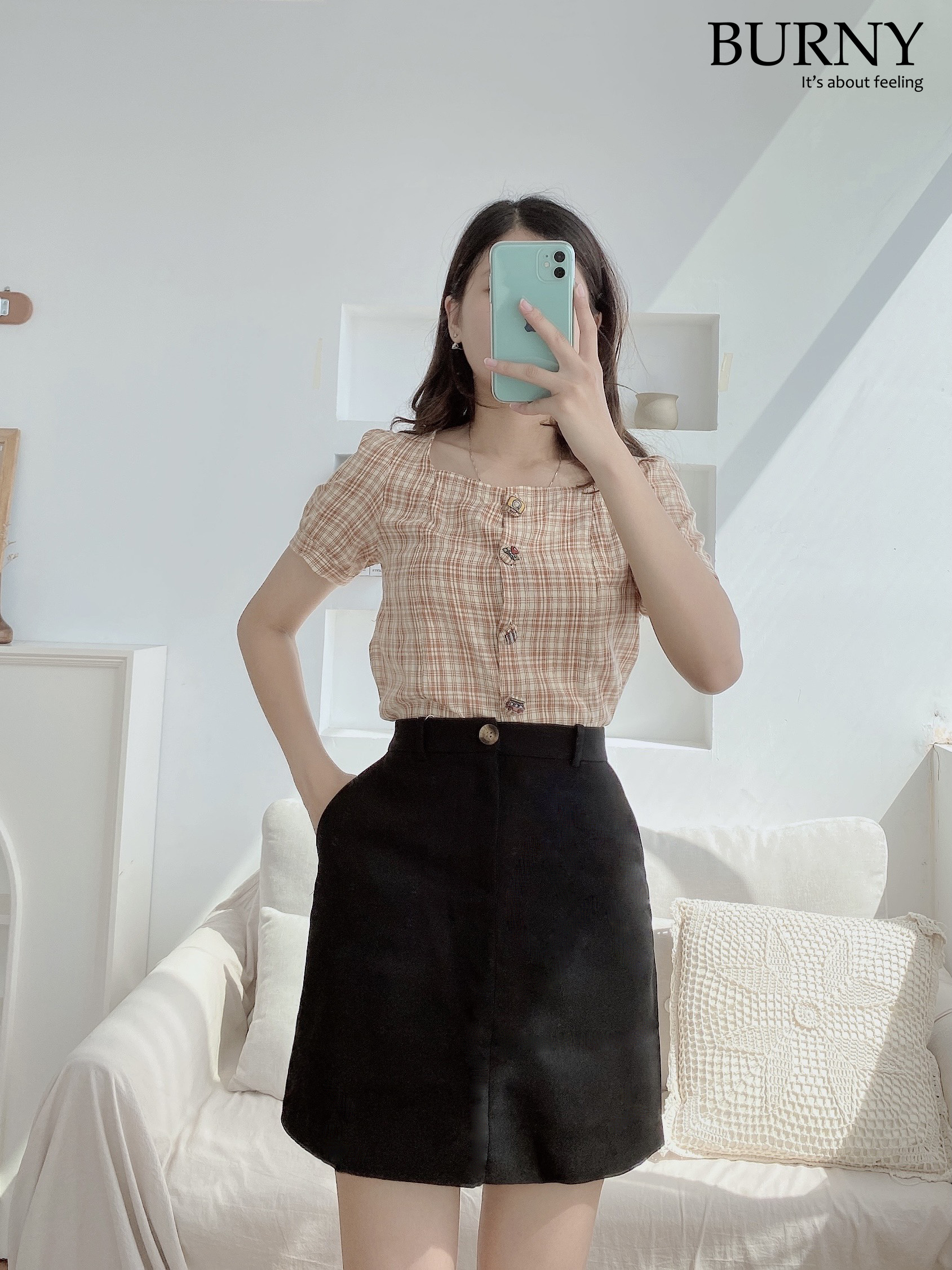 CHI TIẾT SẢN PHẨM ✿ Sản phẩm : Chân váy nữ kẻ caro dáng ngắn xòe chất vải đầy dặn Otis Miều Est.2013 ✿ Chất liệu : Kaki ✿ Màu sắc : ĐEN CARO ✿