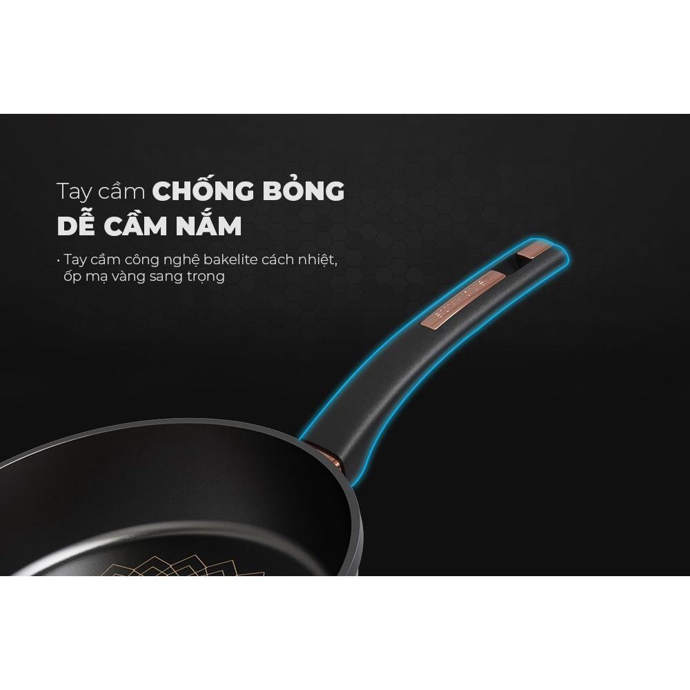 ️ Kích thước chảo: - Chảo 16cm: 16X5cm - Chảo 20cm: 20x5,5cm - Chảo 24cm: 24x6cm - Chảo 26cm: 26x6,5cm - Chảo 28cm: 28x7cm Đặc điểm nổi bật - Công nghệ chống dính Nano Titanium