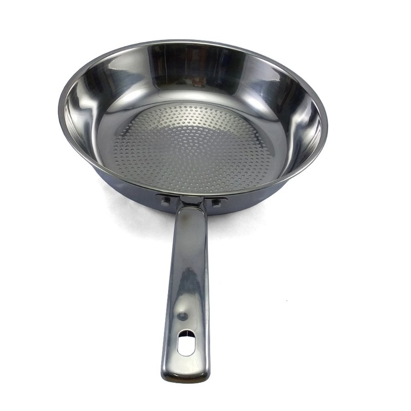 Chảo có đáy thiết kế kiểu mắt lưới nổi, có thể vừa dùng rán/chiên không bị đọng mỡ ở thực phẩm