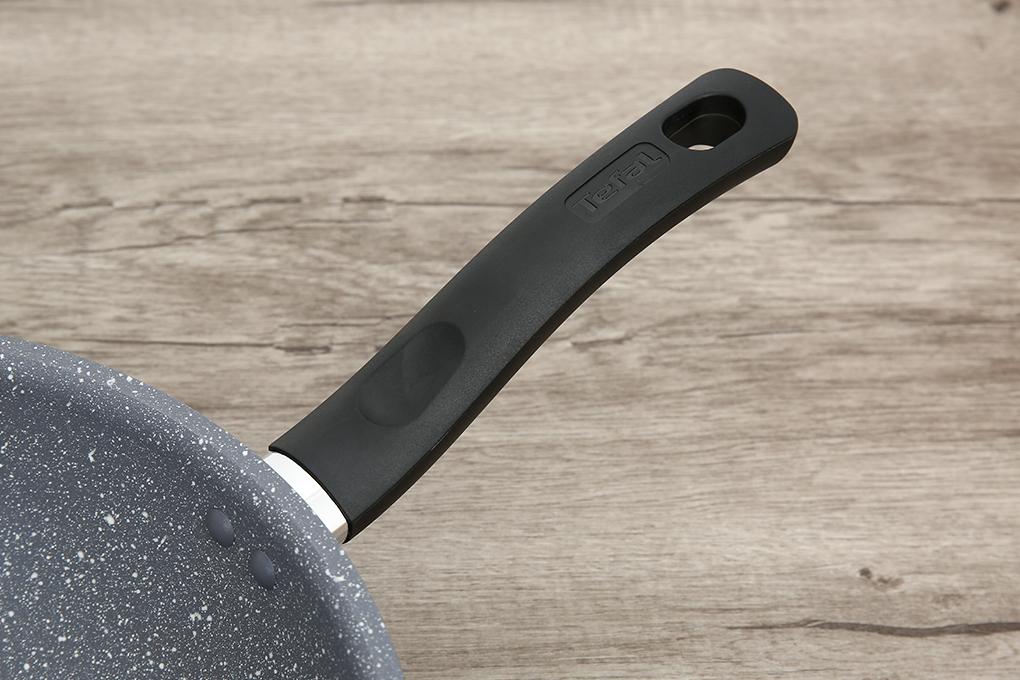Tay cầm nhựa cách nhiệt tốt, kết hợp khối lượng 1.1 kg của chảo cho bạn di chuyển chảo thoải mái, linh hoạt