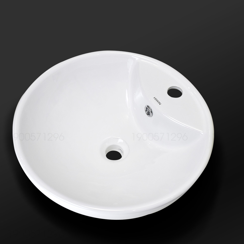 Chất liệu: sứ Màu sắc: Trắng toàn bộ Xử lý bề mặt: Tráng men sáng bóng cao cấp Kiểu chậu: Dương bàn Kích thước: 410*340*145 mm Lỗ thoát nước: 42 - 52 mm Trọng lượng: