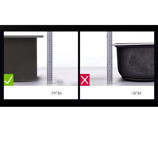 Lòng chậu rửa bát sâu giúp bạn để được nhiều vật dụng nhà bếp hay rửa rau củ một cách thoải mái, dễ dàng. Ngoài ra mặt đáy vát hình chữ X giúp thoát nước nhanh, tránh ngưng tụ nước, rất tiện lợi khi sử dụng.
