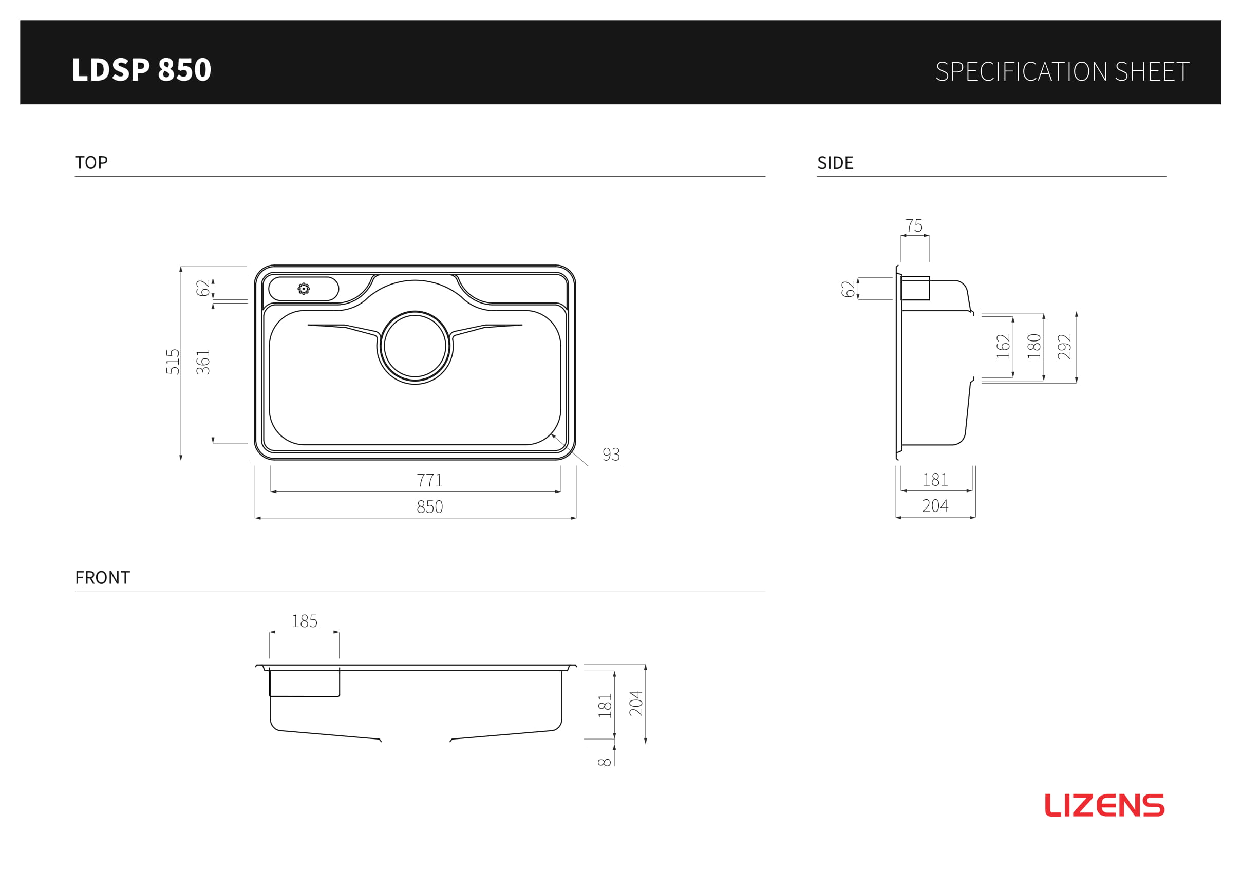 LIZENS.VN I Chậu rửa inox 304 đơn Lizens LDSP 850 I Made in Korea