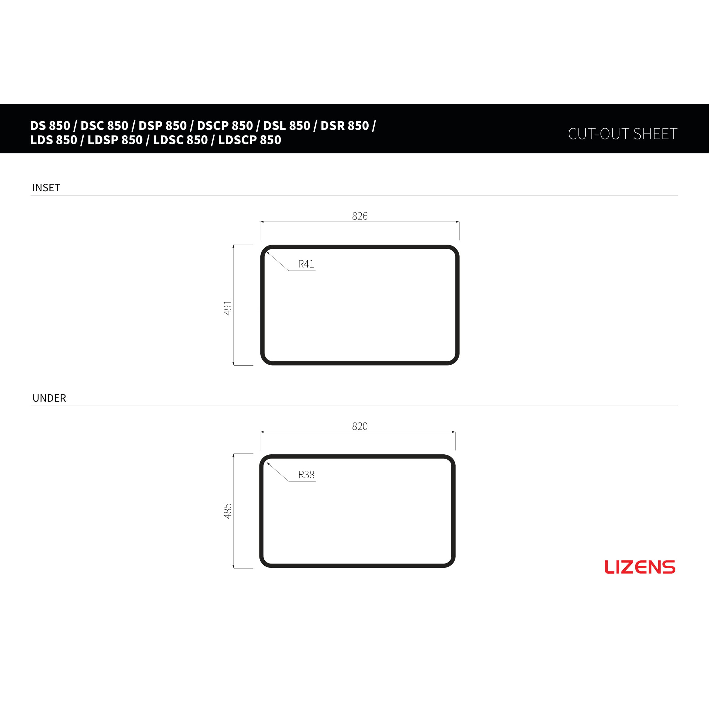 - Kích thước cắt đá: 820 x 485 x R38