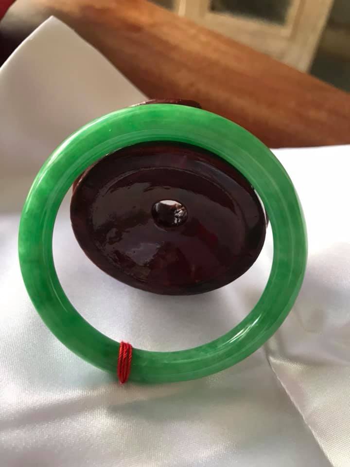 Cặp Vòng Cẩm Thạch tròn 51mm x 6mm Màu xanh ngọc đậm bóng đẹp ạ Nữ mệnh Mộc Hỏa Thủy 50kg - 56kg ạ