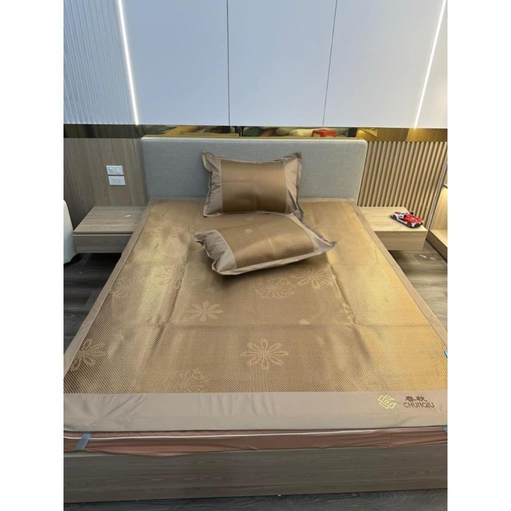 Chiếu có lớp bề mặt tiếp xúc đc làm từ lụa tơ tằm nhân tạo mềm mượt, mát mịn .