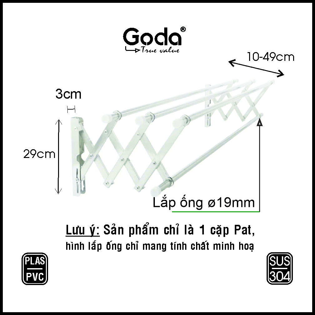 Sản phẩm: Thanh treo tường inox đa năng không cần khoan tường Prota ống 19mm CÁC ĐIỂM NỔI BẬT -Thanh treo tường inox đa năng không cần khoan tường ống 19mm Prota được làm bằng