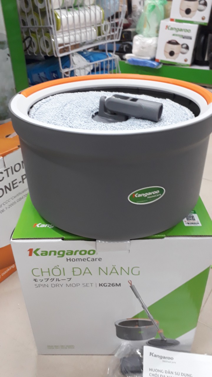 LAU SẠCH BỤI BẨN – TIỆN LỢI KHI DÙNG Tách nước sạch – bẩn riêng biệt, tiết kiệm nước   Chổi lau nhà tách nước thông minh Kangaroo KG26M tự phân loại nước bẩn và nước sạch. Giúp bạn giặt sạch bông lau hơn với lượng nước ít hơn. Sử dụng hệ thống vòi phun tuần hoàn cao áp biến tần loại bỏ vết bẩn và vô hiệu vi khuẩn, tiết kiểm 70% thời gian và công sức. Thùng giặt nhỏ gọn   Thiết kế đẹp, thùng giặt kích thước nhỏ 305305230 mm chứa 2.5 lít nước dễ dàng di chuyển, tiết kiệm diện tích đặt để mọi nơi trong nhà.   2 in 1 – Thao tác làm sạch vắt khô   Thiết kế bồn nước đôi bên trong và bên ngoài giúp bạn phân tách nước sạch và bẩn. Đồng thời thao tác làm sạch và vắt khô tích hợp ngay trong thùng giặt làm thao tác nhanh chóng hơn, tiết kiệm sức lao động. Với rổ quay ly tâm, đầu lau được vắt khô hơn một cách nhẹ nhàng mà không cần dùng tay. Bông lau sợi Nanoseo loại 99% vi khuẩn, khử mùi hôi cấp tốc   Bông lau cấu tạo từ sợi Nanoseo loại bỏ 99% vi khuẩn và khử mùi hôi cấp tốc. Kết cấu sợi nhỏ thấm hút nước tốt, lau sạch bụi bẩn và vắt khô hơn so với các loại vải thông thường. Đặc biệt bông lau KG26M to dầy giúp bạn lau sạch hơn – nhanh hơn so với các loại chổi lau thông thường. CÔNG NĂNG Hệ thống tự giặt thảnh thơi   Cây lau nhà thông minh, tự giặt, tự vắt thảnh thơi với 1 thao tác ấn cây lau. Công nghệ mới loại bỏ 99% vi khuẩn, khử mùi hôi cấp tốc. Chế độ vắt tự động, chổi lau sẽ có độ ẩm thích hợp giúp bạn dễ dàng lau sạch bụi bẩn trong nhà.#choilaunha #choilaunhadanang