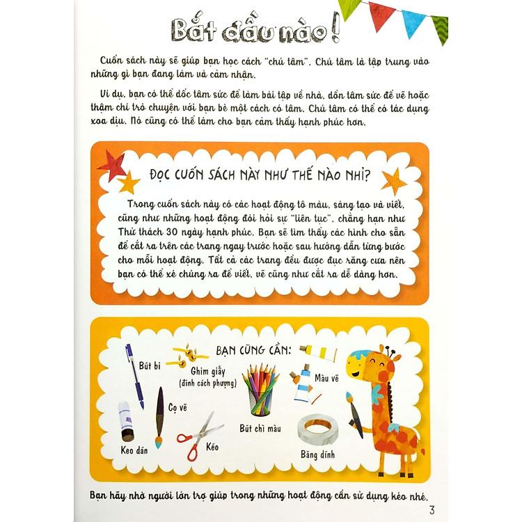 Cuốn sách này sẽ giúp bạn học cách “chú tâm”. Chú tâm là tập trung vào những gì bạn đang làm và cảm nhận. Ví dụ, bạn có thể dốc tâm sức để làm bài tập về nhà, dồn tâm sức để vẽ hoặc thậm chí trò chuyện với bạn bè một cách có tâm. Chú tâm có thể có tác dụng xoa dịu. Nó cũng có thể làm cho bạn cảm thấy hạnh phúc hơn .