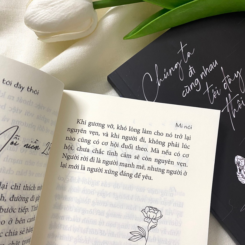 - Cùng bạn chữa lành, vững vàng vượt qua những trắc trở trong tình yêu GỬI BẠN, CÔ GÁI TỪNG TỔN THƯƠNG TRONG TÌNH YÊU Từ ngày người ấy rời đi, bạn đã ổn hơn chưa? Cho dù có yêu bao nhiêu người trải qua bao nhiêu mối tình thì chúng ta vẫn chẳng thể nào quen được với nỗi đau chia tay. Có người mất vài ngày để nguôi ngoai, nhưng cũng có những trái tim mãi chẳng lành sau tan vỡ. Sau những lần tổn thương ấy liệu chúng ta có còn tin vào tình yêu, còn đủ can đảm để bước vào một mối quan hệ mới? Nếu bạn đang ở trong giai đoạn khó khăn ấy, vậy thì chỉ mong bạn hiểu rằng bạn không cô đơn đâu. Có ai từng yêu mà chưa từng nếm trải đắng cay? Trong cuốn sách “Chúng ta đi cùng nhau tới đây thôi” tác giả Mi Nói đã gói ghém tất cả những kỷ niệm, những nhiệt thành tuổi trẻ, để trải lòng, để đồng cảm với những trái tim đang cần được chữa lành. Mong rằng cuốn sách này sẽ được ở bên, được an ủi, được khóc cùng bạn, cùng bạn vượt qua những tháng ngày vụn vỡ nhất!