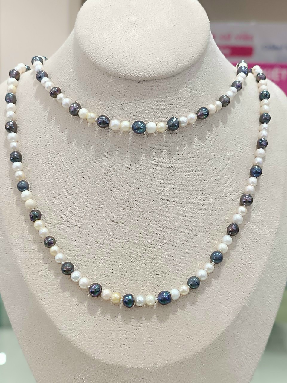 Hãy để chuỗi Ngọc trai Akoya mix màu ngọc trắng và ngọc đen ánh tím là điểm nhấn hoàn hảo cho vẻ đẹp của bạn. Khám phá sự kết hợp tuyệt vời này và thể hiện cá tính của bạn thông qua một món trang sức độc đáo và đẳng cấp.