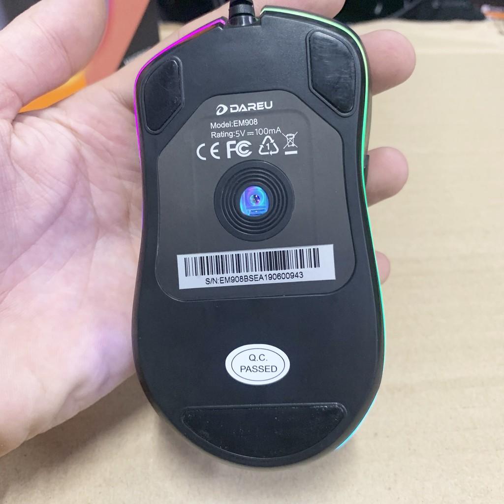 Thông số sản phẩm: Dareuem908 "Sensor: BRAVO (ATG4090) DPI: 800-6400 Tracking: 150IPS Polling rate: 1000Hz Switch: DAREU (50 triệu lần click) Kích thước: 1226740mm Dây một.8m Trọng lượng: 85g +/- 5g"