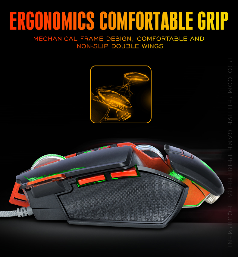 Chuột chơi Game có đèn nền - Cổng kết nối: USB - Kích thước: 113*63*38mm - DPI: 800-1000-1200DPI - Tuổi thọ switch: 3,000,000 lần nhấn - Độ dài cáp kết nối: 1.5m - Trọng lượng: 150g - Hệ điều hành: Windows 8,