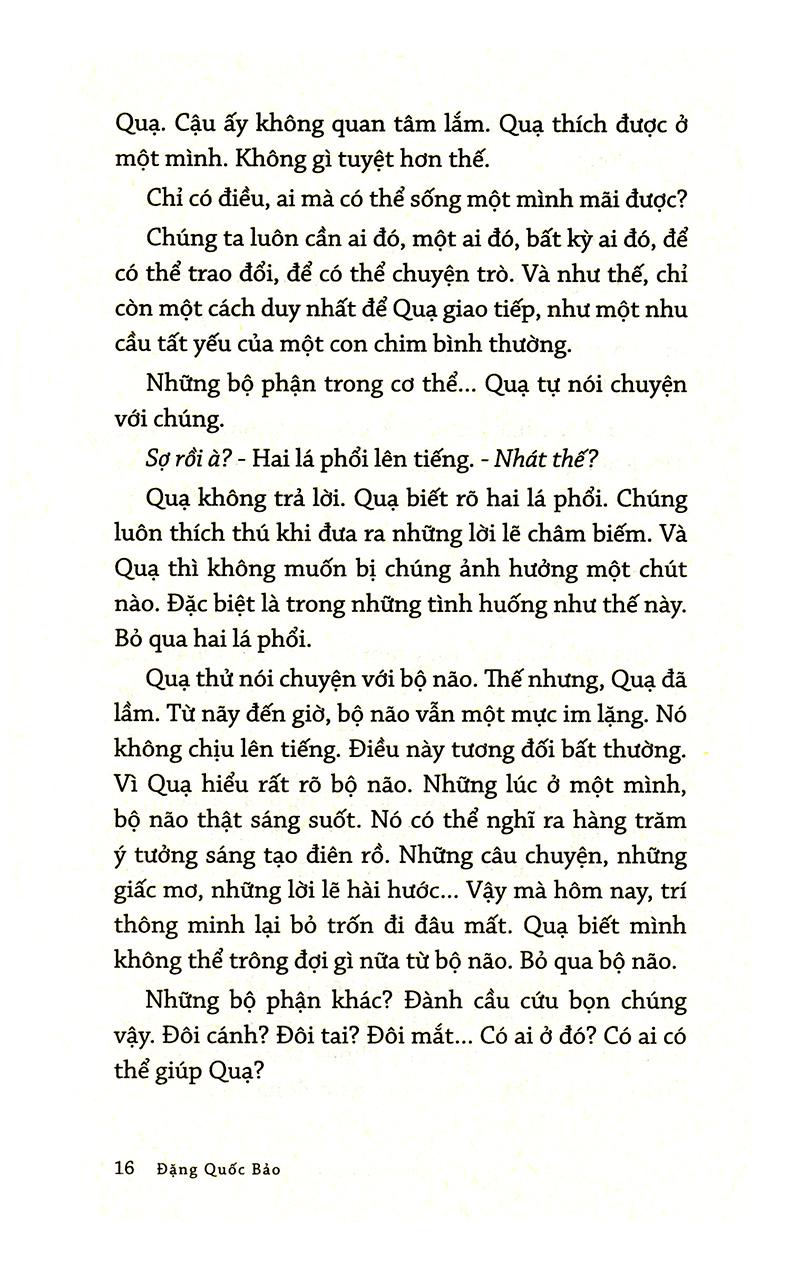 Như cuộc rong chơi, bạn đọc sẽ tìm thấy chính mình trong câu chuyện của một chú quạ, thấy những người quen của mình qua các cư dân của Vương Quốc, rồi sẽ tự khám phá bản thân và chinh phục được thính giả bằng kỹ năng trình bày. Đó là cách mà tác giả Đặng Quốc Bảo - nguyên chủ tịch câu lạc bộ diễn thuyết Sài Gòn - kỳ vọng ở bộ sách này, và đó chính xác là điều anh đem đến cho độc giả. Một bộ sách hướng dẫn kỹ năng cho người trẻ theo phong cách mới mẻ.