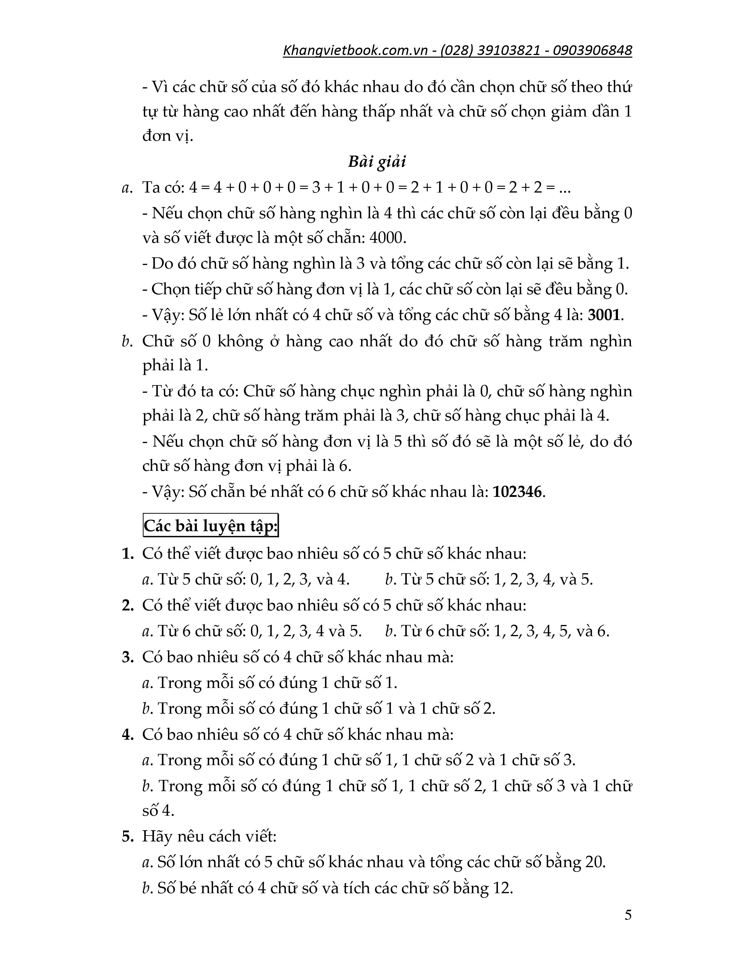 Toán nâng cao 4-5 _TỔNG_TÍCH CÁC CHỮ SỐ _Số lớn nhất chữ số khác nhau tổng chữ số là 25 (P1.1)