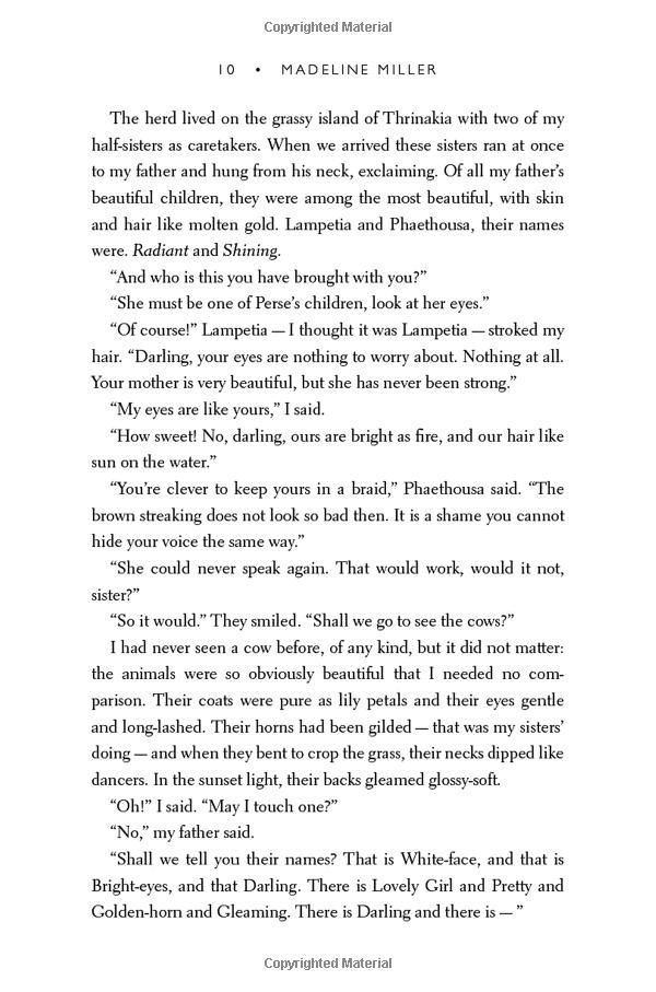 Scorned, rejected and at last exiled from her father's house for her dark gifts, Circe arrives on the remote island of Aiaia with nothing but her wits and magic to help her. But there is danger for a solitary woman in the world, and Circe's independence and strange powers draw the wrath of men and gods alike. To protect what she holds dear, Circe must decide whether she belongs with the deities she is born from, or the mortals she has come to love.