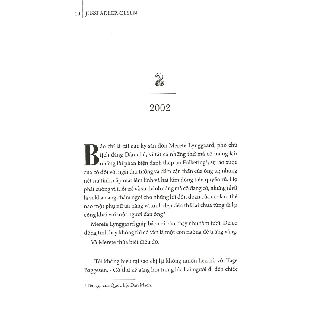 Cô Gái Trong LồngCarl Mørck từng là một thanh tra hình sự năng nổ, một điều tra viên án mạng xuất sắc tại Copenhagen. Trong một lần khảo sát hiện trường, ông bị đạn sượt qua đầu, hai đồng đội của ông...