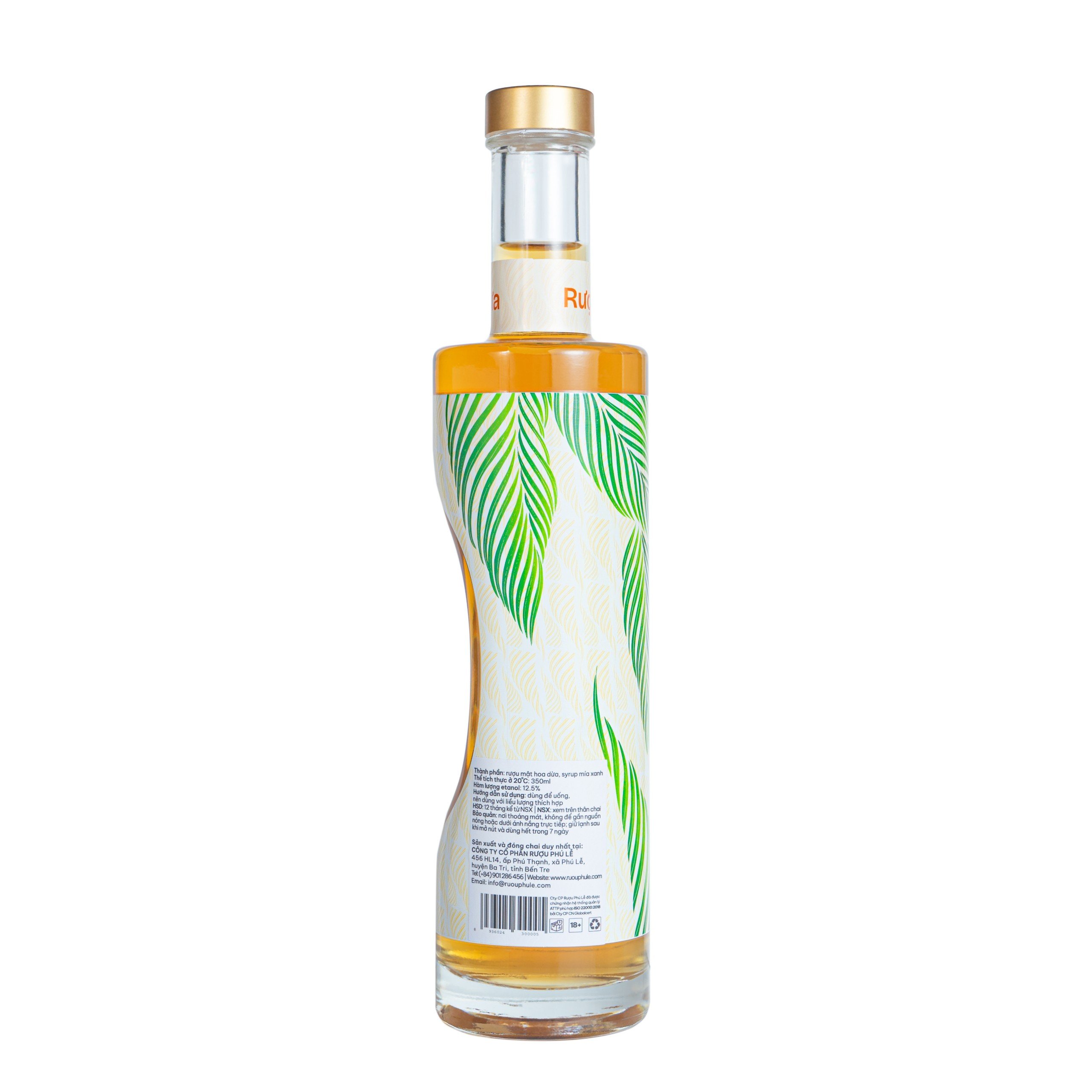 Mua tại TiktokCô Gái Xứ Dừa với thành phần từ mật hoa dừa lên men, mang đến cảm giác chua thanh, dịu ngọt. Sản phẩm phù hợp để uống khai vị và nhâm nhi trong lúc chuyện trò, Thành phần: rượu mật hoa dừa, syrup mía xanh Thể tích thực ở 20 độ C: 350ml Hàm lượng etanol: 12.5% Hướng dẫn sử dụng: dùng để uống, nên dùng với liều lượng thích hợp HSD: 12 tháng Bảo quản: nơi thoáng mát, không để gần nguồn nóng hoặc dưới ánh nắng trực tiếp; giữ lạnh sau khi mở nút và dùng hết trong 7 ngày Sản xuất và đóng chai duy nhất tại: CÔNG TY CỔ PHẦN RƯỢU PHÚ LỄ