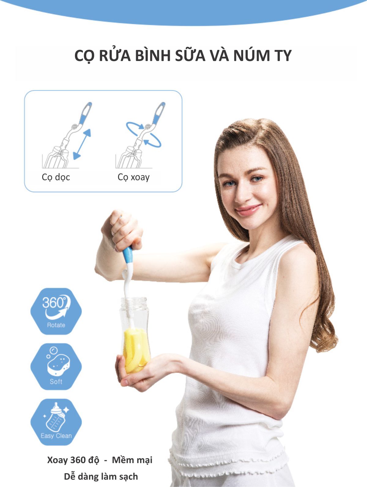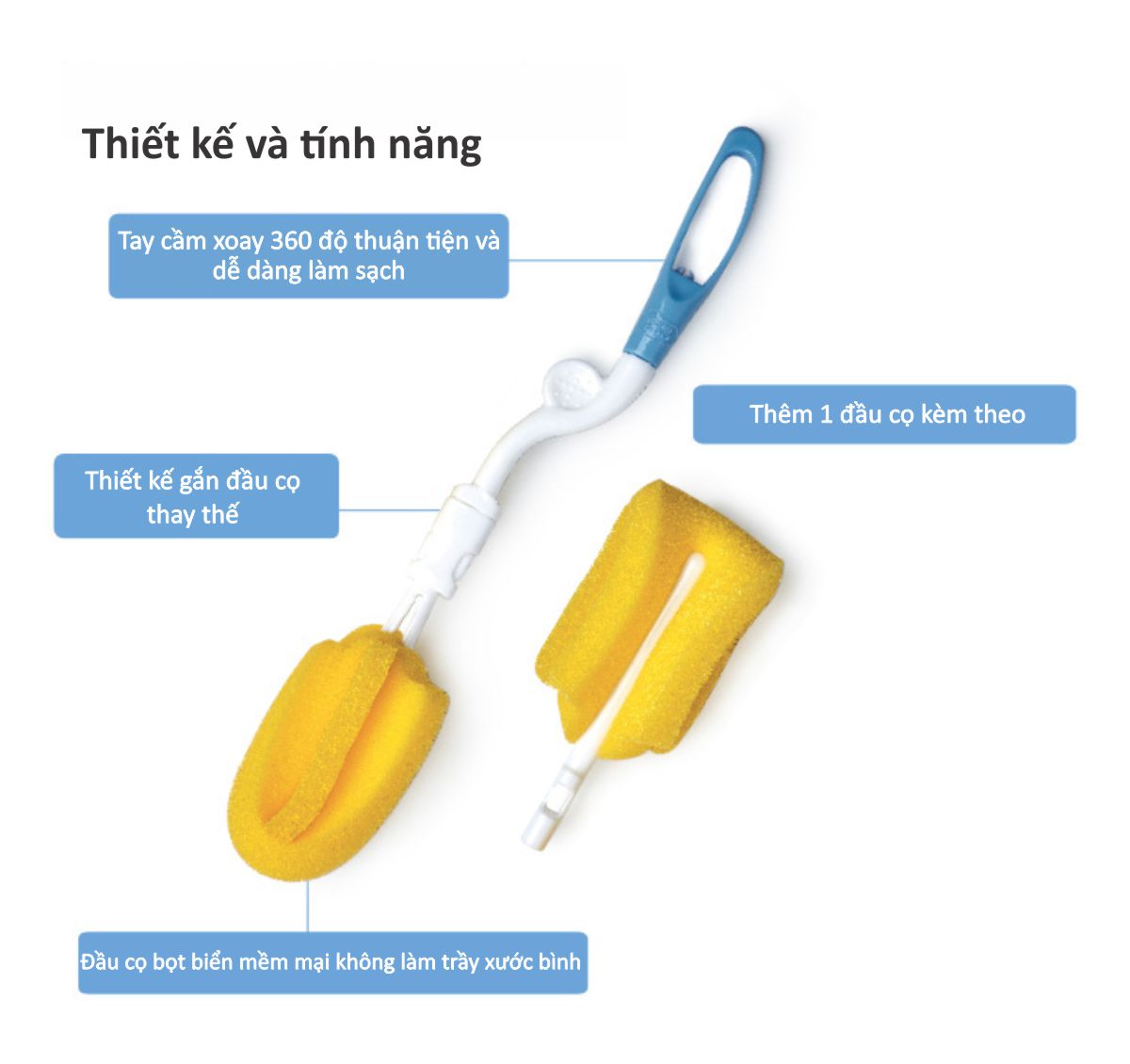 Giới thiệu Dụng cụ vệ sinh bình sữa đa năng Wesser sản xuất theo công nghệ của Đức, sử dụng loại mút cao cấp có độ dài vượt trội, siêu bền. Công dụng Mút giúp