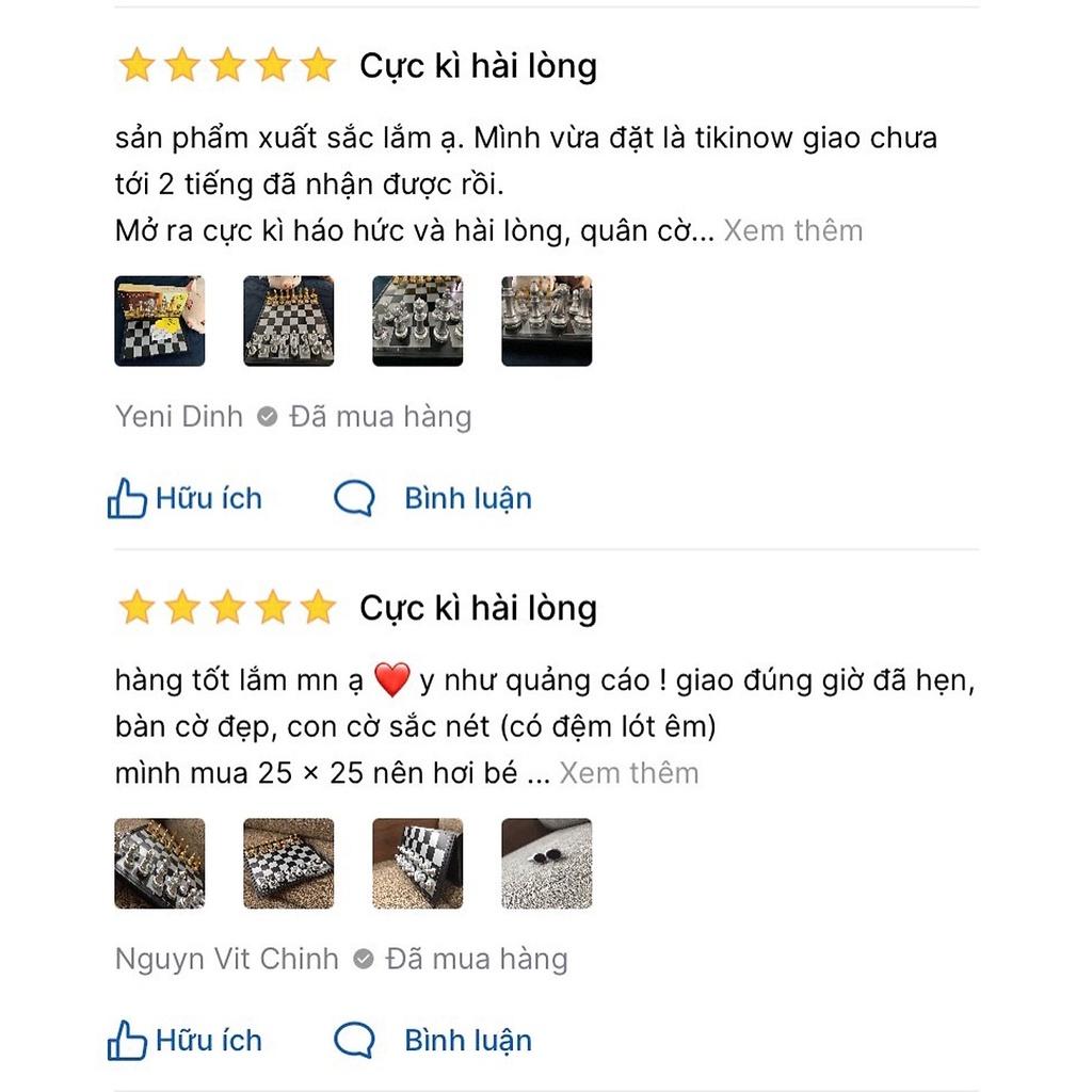 Mua tại TiktokCờ Vua Nam Châm - Cờ Vua Cao Cấp - Hàng chính hãng 3810A: 25 x 25cm Nặng chưa tới 0.5kg Chất liệu: Nam châm + Tổng hợp Làm cách nào để chơi cờ vua | Luật chơi + 7 nước đi đầu tiên Không bao giờ là quá muộn để học chơi cờ vua - một trò chơi phổ biến thế giới! Học các quy tắc chơi cờ rất dễ: Bước 1. Làm cách nào để thiết lập Bàn cờ Khi ván cờ bắt đầu, bàn cờ được sắp xếp để mỗi đấu thủ đều có ô trắng (hoặc ô màu nhạt) ở góc dưới tay phải. Các quân cờ được bố trí cùng một kiểu mỗi lần chơi. Hàng thứ hai (hoặc bậc hai) là dãy những quân tốt. Quân xe nằm ở hai góc, quân mã nằm cạnh đó, tiếp theo là quân tượng. Cuối cùng là hậu (hậu đen ô đen, hậu trắng ô trắng) và vua nằm ở ô còn lại. Bước 2. Làm thế nào để di chuyển quân cờ Làm thế nào để Di chuyển Vua trong Cờ vua Vua là quân cờ quan trọng, nhưng lại là quân cờ yếu nh.ất. Vua chỉ có thể di chuyển một ô ở mọi hướng - lên, xuống, qua, lại và đi chéo. Vua không thể đi vào vị trí bị chiếu được (nơi mà vua sẽ bị bắt). Khi mà vua bị tấn công bởi các quân cờ khác, nó được gọi là "chiếu". Làm thế nào để Di chuyển Quân hậu trong Cờ vua Quân hậu là quân cờ quyền lực nh.ất. Nó có thể di chuyển bất cứ hướng nào - Tiến, lùi, ngang hoặc là chéo - di chuyển xa đến đâu cũng được miễn là nó không đi xuyên qua các quân cờ khác. Và như tất cả mọi quân cờ, nếu quân hậu bắt được một quân của đối phương, thì nước đi đó kết thúc và quân hậu thay thế vị trí quân bắt được. Hãy để ý cách mà quân hậu trắng bắt quân hậu đen và bắt quân vua đen phải di chuyển. Làm thế nào để Di chuyển Quân xe trong Cờ vua Quân xe có thể di chuyển xa nh.ất có thể, nhưng chỉ di chuyển tiến lùi, và sang ngang được. Xe rất mạnh khi chúng bảo về nhau và phối hợp! Làm thế nào để Di chuyển Quân tượng trong Cờ vua Quân tượng có thể di chuyển xa nh.ất có thể, nhưng chỉ có thể đi chéo. Mỗi quân tượng bắt đầu ở một ô màu (sáng hay tối) và sẽ luôn luôn đứng ở ô màu đó. Các quân tượng phối hợp tốt với nhau vì chúng bù đắp cho điểm yếu của nhau. Làm thế nào để Di chuyển Quân mã trong Cờ vua Quân mã di chuyển khác lạ so với các quân khác - di chuyển hai ô một hướng, rồi một ô quay ngoặt 90 độ, giống như hình chữ "L". Quân mã là quân duy nh.ất có thể nhảy qua một quân khác. Làm thế nào để Di chuyển Quân tốt trong Cờ vua Quân tốt đặc biệt ở chỗ cách nó di chuyển khác cách nó bắt quân: chúng đi thẳng, nhưng bắt quân chéo. Các quân tốt chỉ có thể tiến một bước trong một lượt, trừ lượt đầu tiên chúng có thể tiến hai bước. Tốt chỉ có thể bắt quân địch ở phía chéo trước nó và chúng không thể đi hay bắt quân phía ngược lại. Nếu có một quân cờ đứng trước mặt, quân tốt không thể nào đi tiếp hay ăn quân cờ đó. Bước 3. Khám phá các Quy luật Đặc biệt của Cờ vua Làm sao để phong cấp quân Tốt trong Cờ vua Quân tốt có một khả năng đặc biệt là nếu nó di chuyển đến hàng cuối cùng phía bên kia bàn cờ, nó sẽ được thay thế bằng một quân cờ khác (đây gọi là Phong cấp). Nơi sản xuất: Việt Nam Bảo hành: 1 đổi 1 tem bảo hành