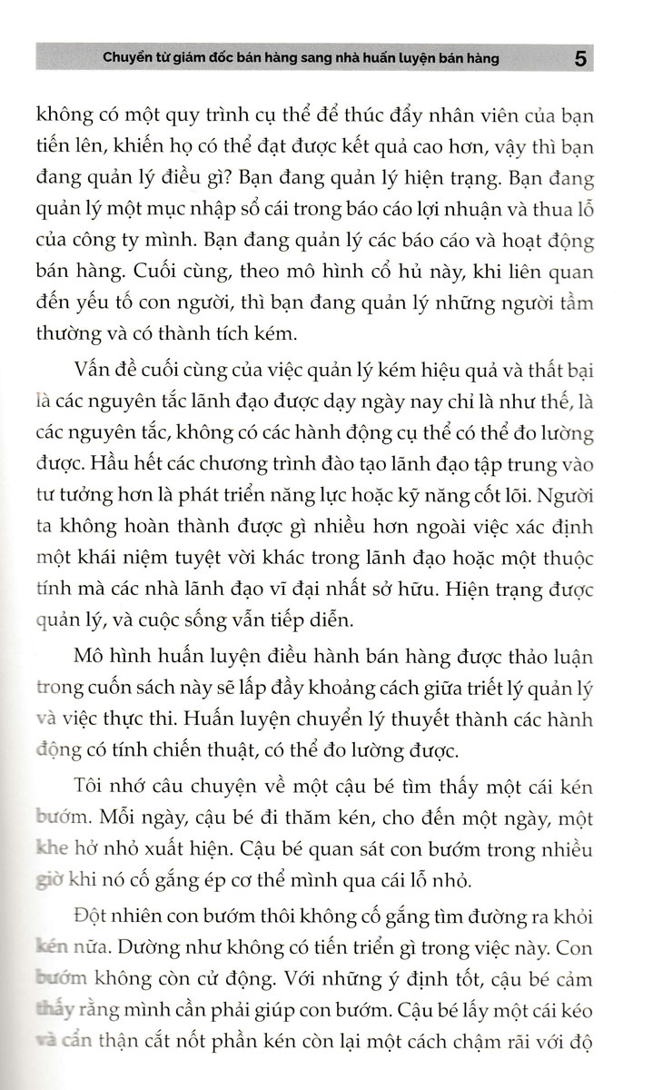 Cuốn sách này bao gồm các nghiên cứu điển hình, chiến lược xoay chuyển tình thế trong 30 ngày dành cho những người làm việc kém hiệu quả, một thư viện gồm các biểu mẫu và kịch bản huấn luyện, cũng như hàng trăm câu hỏi huấn luyện mạnh mẽ. Bạn có thể sử dụng ngay lập tức để huấn luyện bất kỳ ai trong mọi tình huống. Huấn Luyện Nhân Viên Bán Hàng Trở Thành Nhà Vô Địch Bán Hàng là cẩm nang của bạn để tạo ra một nền văn hóa huấn luyện tiến bộ và xây dựng đội ngũ những nhân viên hàng đầu .