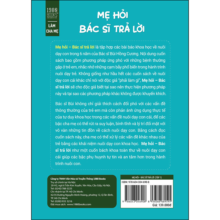 Hai cuốn sách Mẹ hỏi – Bác sĩ trả lời là tập hợp các bài báo khoa học về nuôi dạy con trong 6 năm của bác sĩ Bùi Hồng Cương. Nội dung cuốn sách bao gồm phương pháp ứng phó với những bệnh thường gặp ở trẻ em, nhắc nhở những cặm bẫy phổ biến trong hành trình nuôi dạy trẻ.