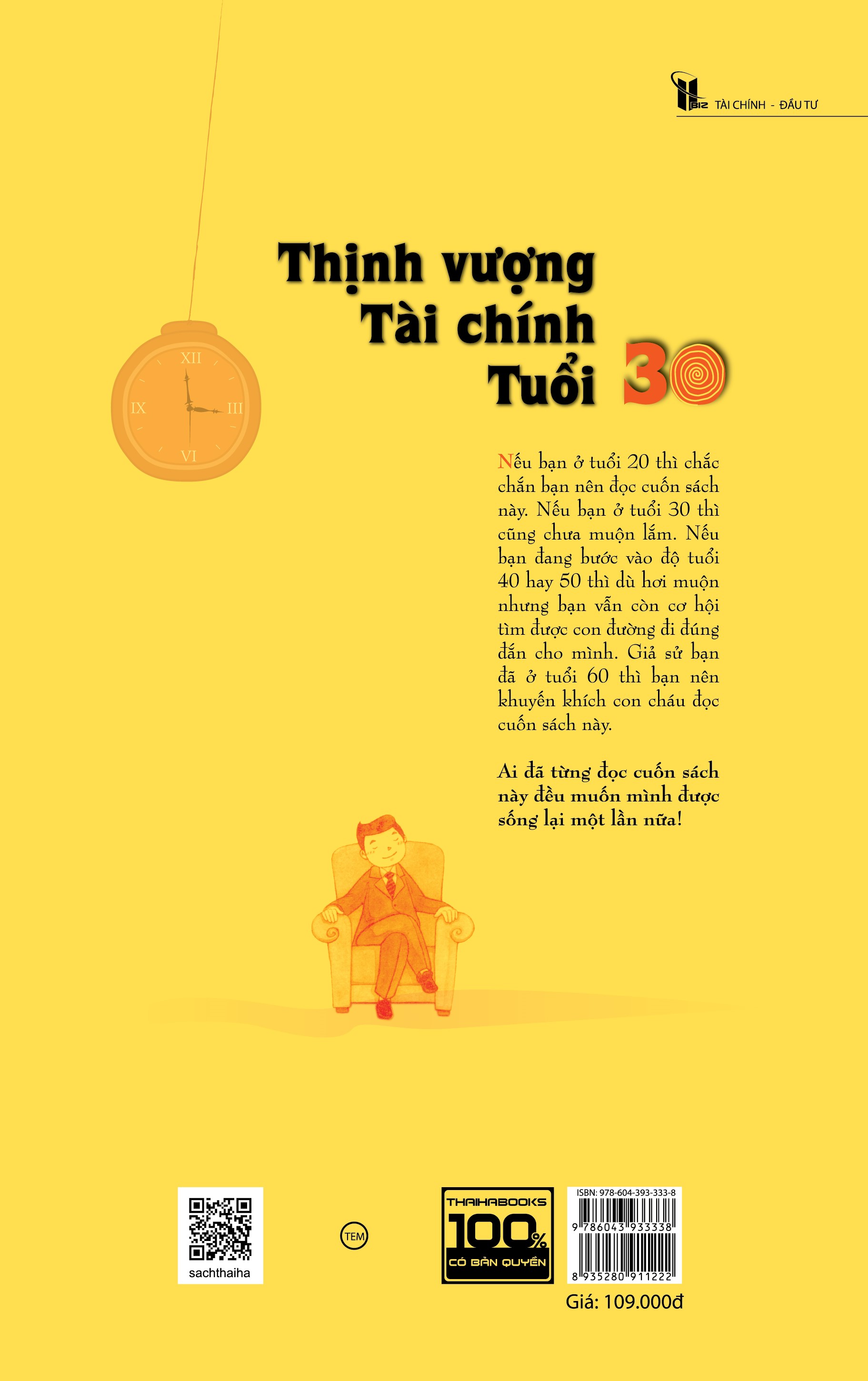Cuốn sách Thịnh vượng tài chính tuổi – 30 tập 1 không thể cho bạn mọi đáp án cho mọi vấn đề. Nhưng các tác giả đã biên tập cuốn sách này để truyền đạt hiểu biết cho các độc giả, để các độc giả không bỏ bê tuổi già của mình, nâng cao ý thức về sự chuẩn bị cho tuổi già, và để chỉ ra phương hướng chuẩn bị cho tuổi già của các bạn. Chúng tôi hi vong cuốn sách này đã trở thành ngọn hải đăng soi sáng đường khi độc giả hướng ra biển lớn cuộc đời.