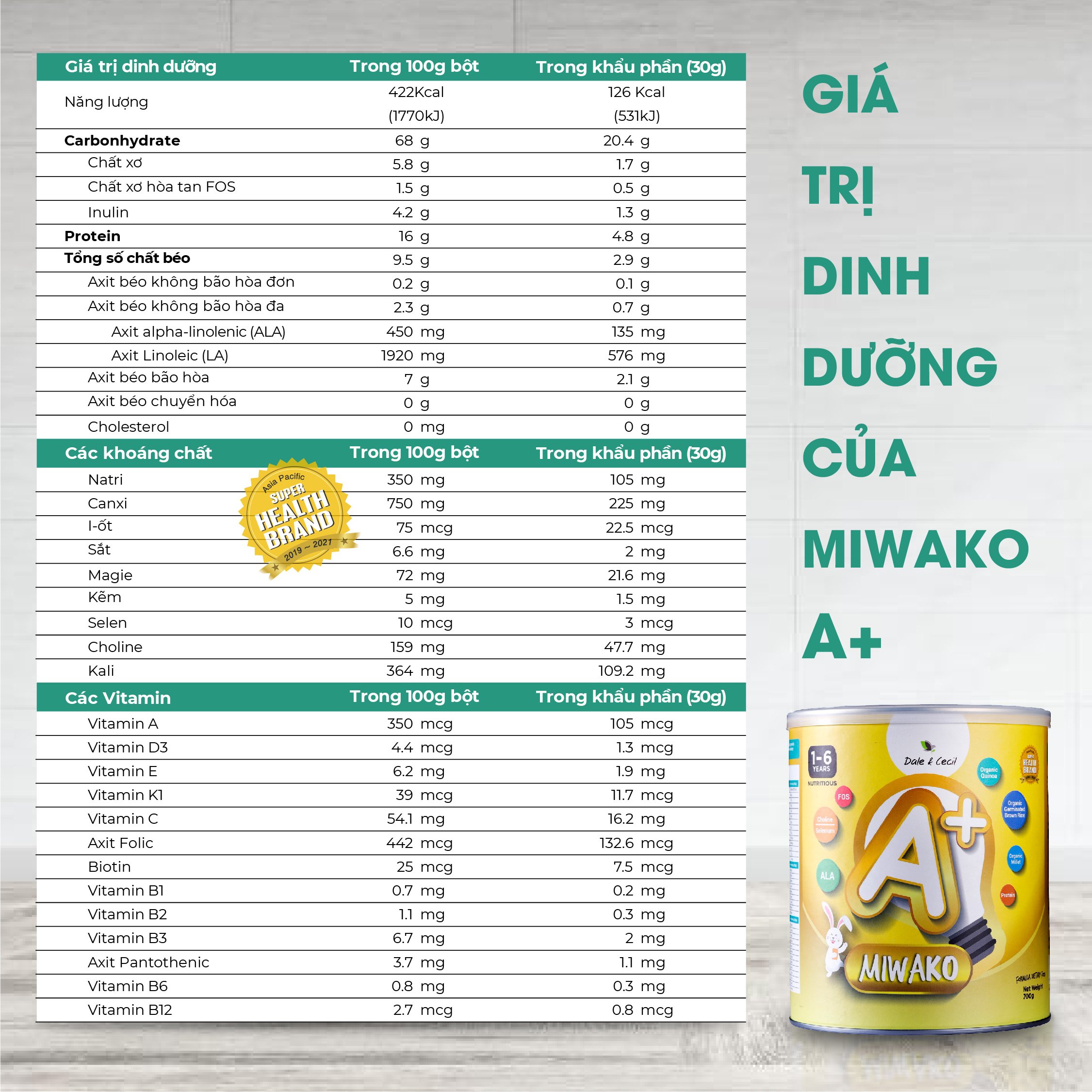 - Miwako A+ vị vani nhiều dinh dưỡng hơn dành cho các bé tăng động giảm chú ý