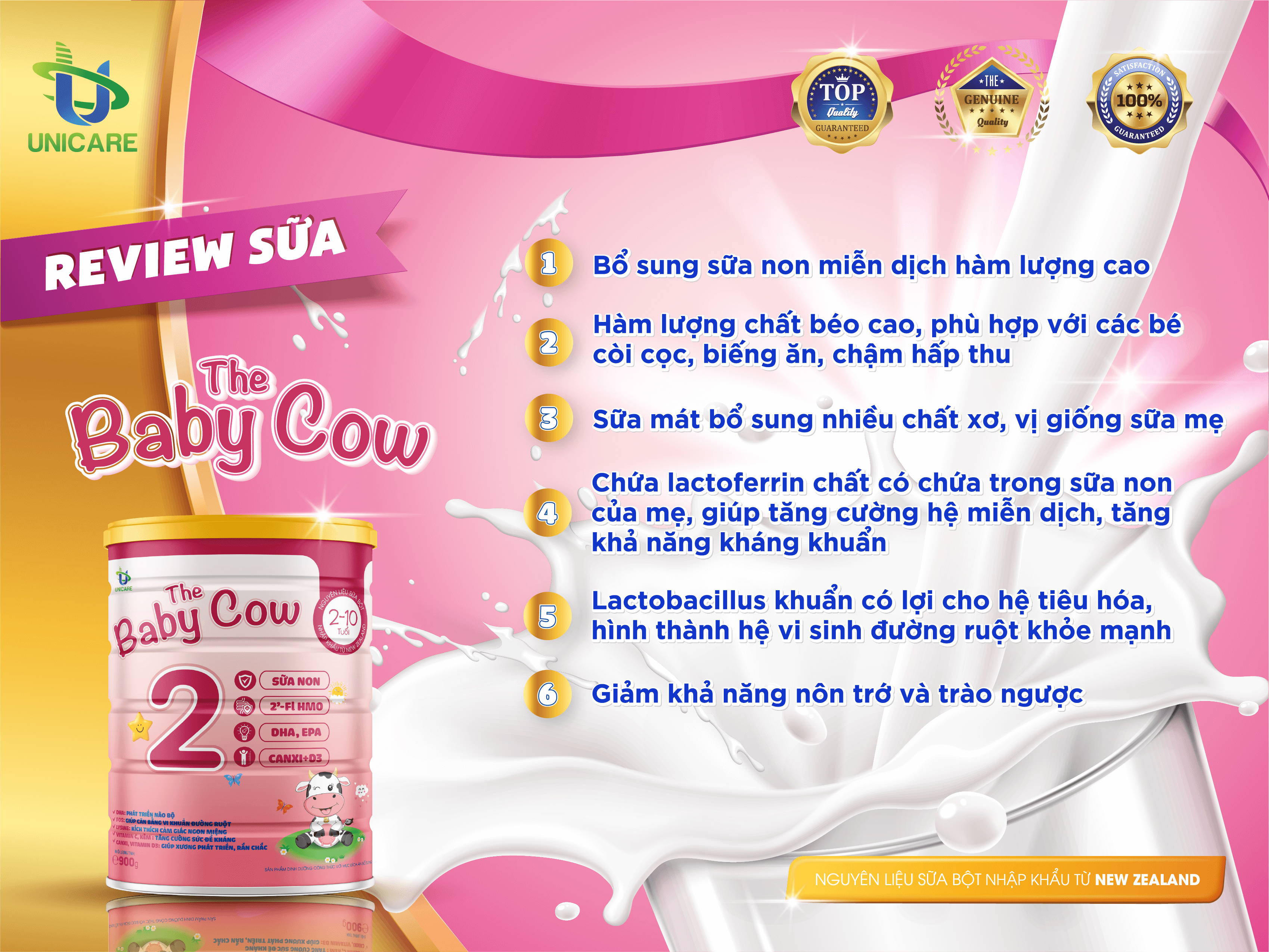 Sản phẩm dinh dưỡng The Baby Cow được đứng vào top các sản phẩm sữa công thức có hàm IgG cao nhất nhập khẩu từ NewZealand