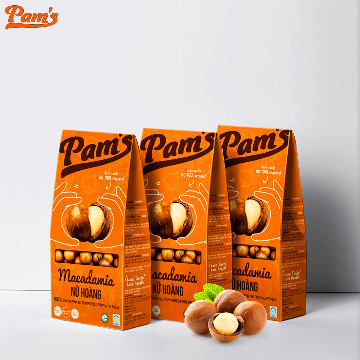 - Hạt Macca Pam's được nhập khẩu chính ngạch và chế biến, đóng gói theo qui trình khép kín chuẩn ISO22000 tại Việt Nam. Hạt Macca thành phẩm đạt chất lượng cao nhất, thơm ngon, bảo toàn các chất dinh dưỡng và khoáng chất trong hạt.