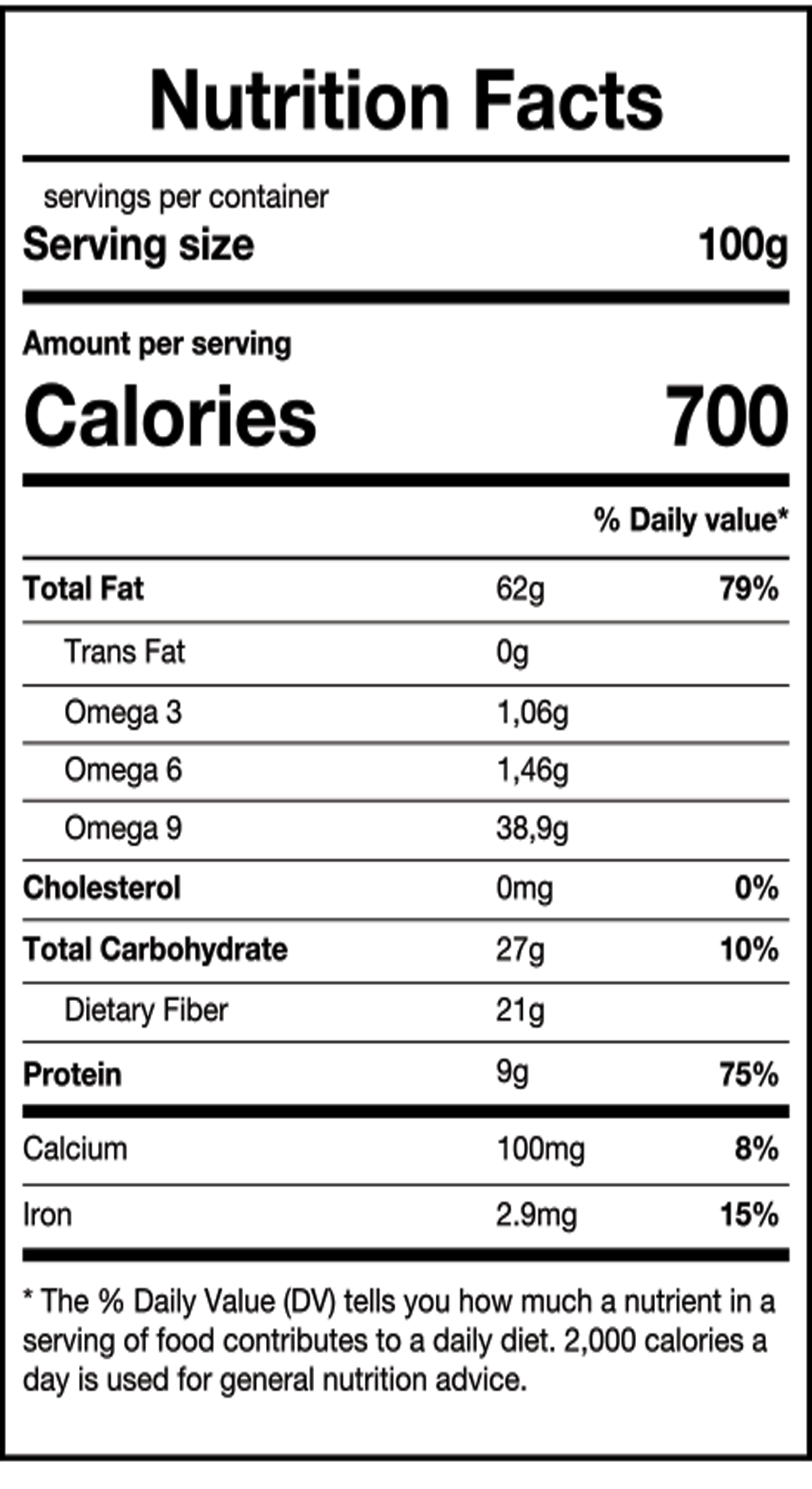 - Thành phần dinh dưỡng: Protein, Vitamin B6, Khoáng chất, chất xơ, Omega3,6,9