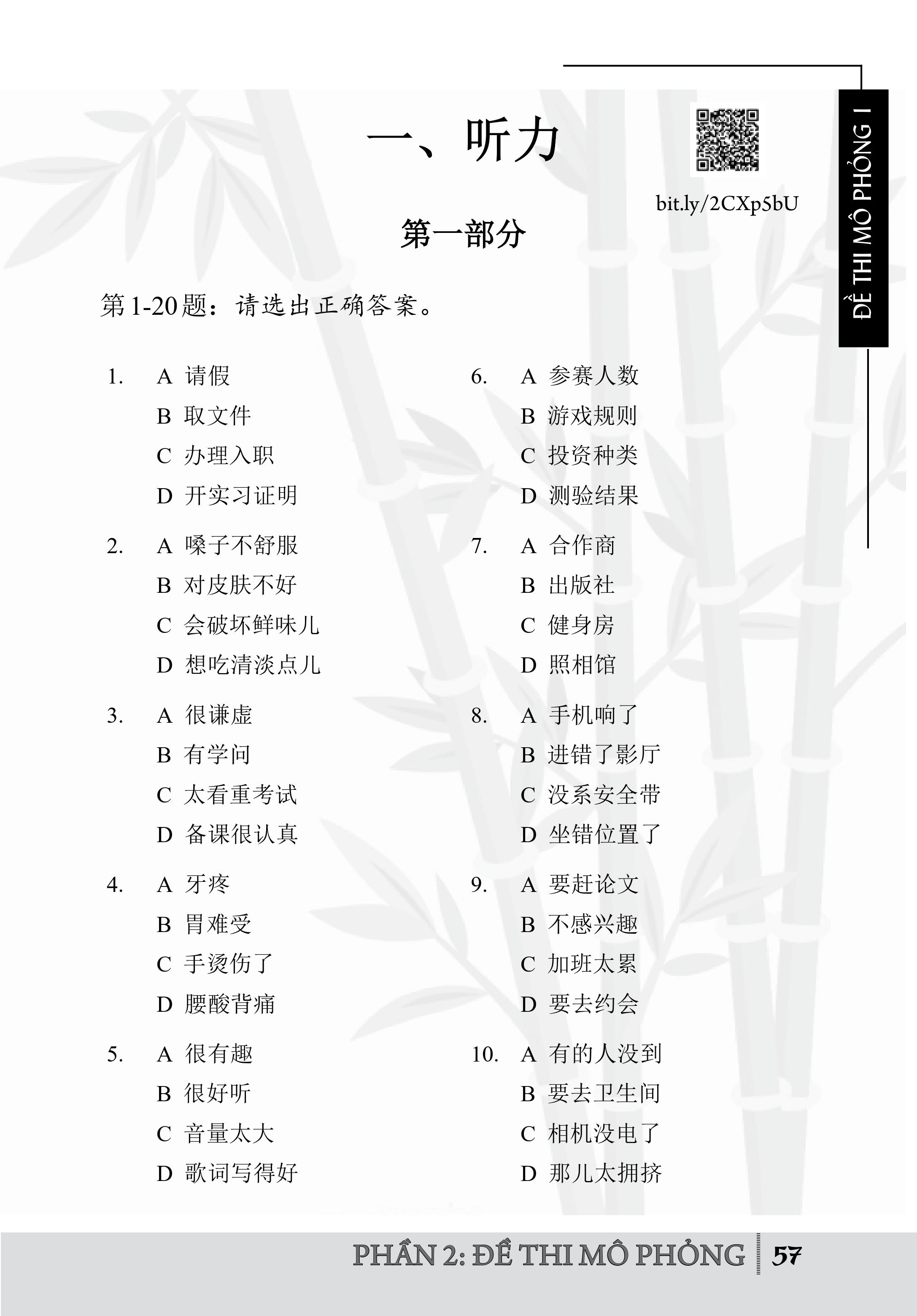 Bộ Đề Luyện Thi YCT - Cấp Độ 1 (Quét Mã QR Để Nghe File MP3) Ngày nay, rất nhiều quốc gia và khu vực trên thế giới có ngôn ngữ mẹ đẻ không phải