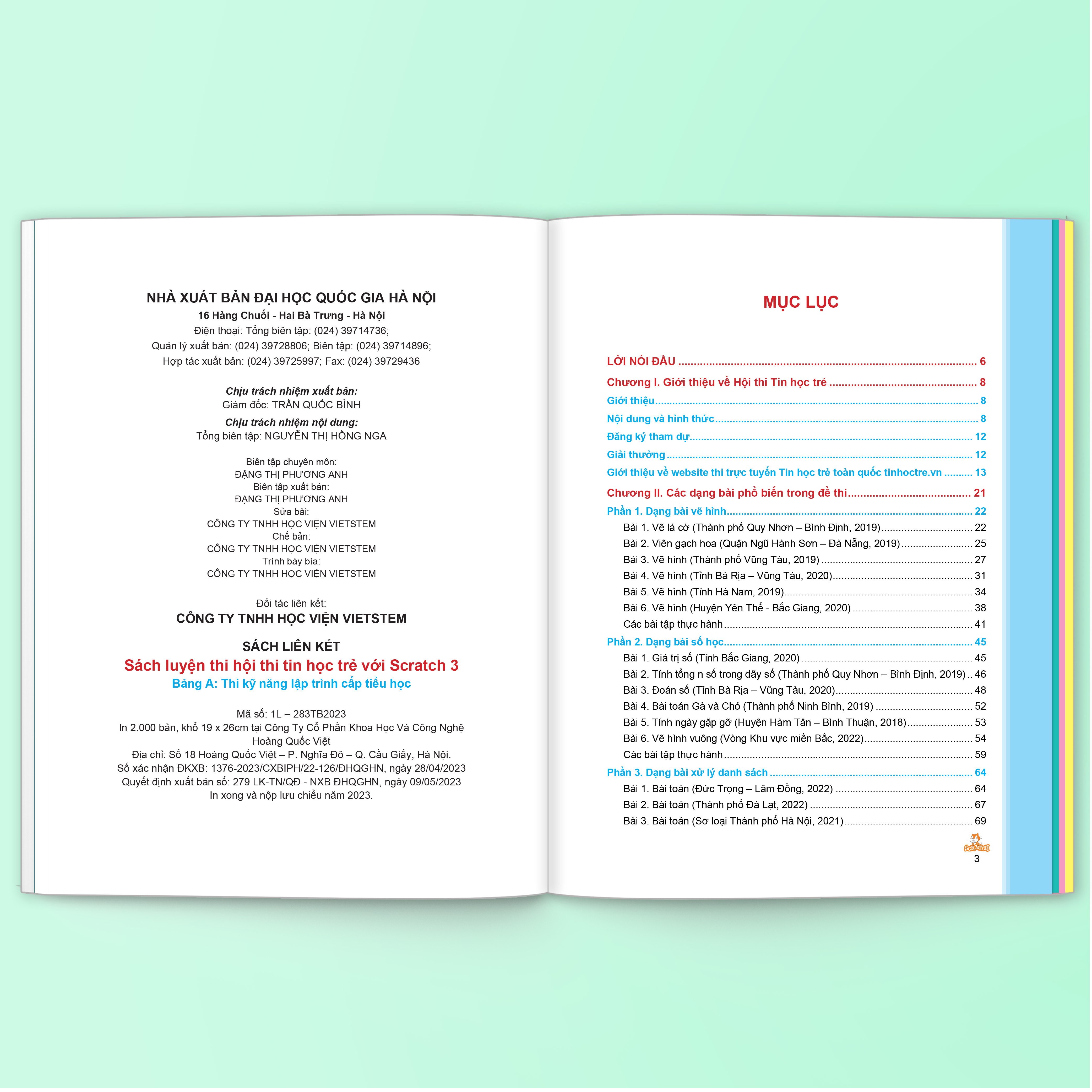 Combo Sách Bài tập Nâng Cao Scratch 3 và Sách Luyện thi Hội Thi tin học trẻ với Scratch 3 dành cho cấp Tiểu học 1. SÁCH BÀI TẬP NÂNG CAO SCRATCH 3 Cuốn sách