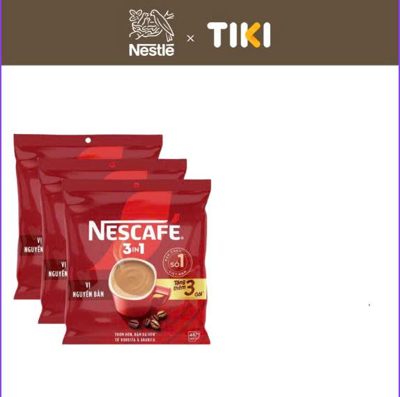 Combo 3 Bịch Cà phê Hòa tan NESCAFÉ VỊ NGUYÊN BẢN 46 gói Đậm Thơm Hoàn Hảo (Bịch 46+3 gói x 16g)