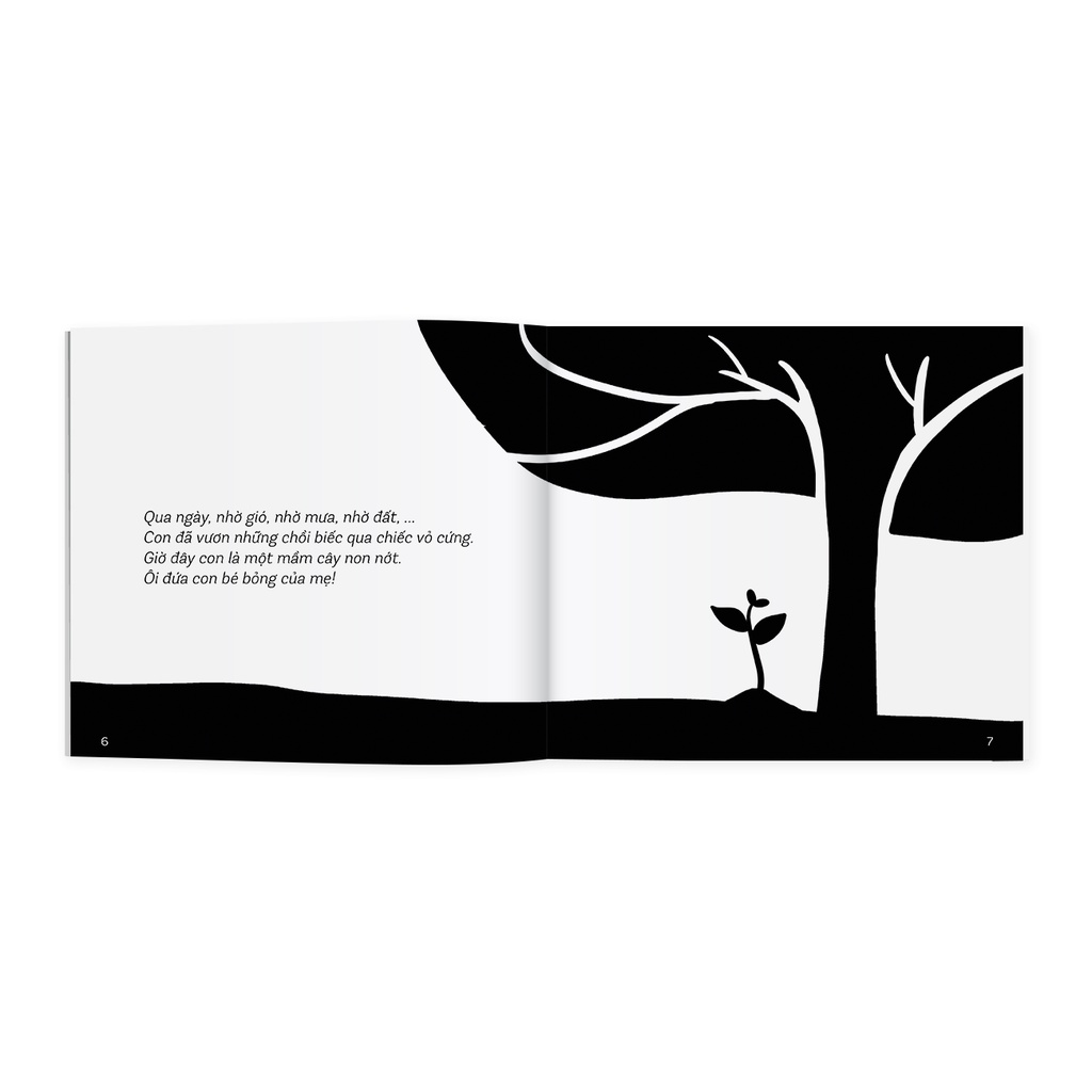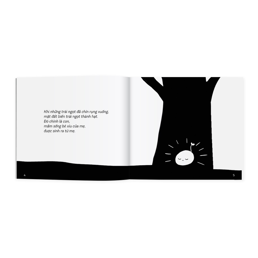 - Nội dung sách gồm những câu chuyện cảm động về gia đình, tình mẫu tử chạm đến trái tim của các bậc cha mẹ. Cảm ơn con đã sinh ra trên đời: Thiên thần muốn đi tìm mẹ của mình và bay đi khắp nơi hỏi các bạn động vật nhỏ. Các bạn động vật nhỏ đều không biết mẹ của thiên thần ở đâu. Thiên thần thấy ai cũng có mẹ chở che yêu thương nên càng muốn nóng lòng đi tìm của mẹ. Ánh sáng bao bọc lấy thiên thần. Cuối cùng thiên thần cũng tìm thấy mẹ của mình - đó chính là con. Và con muốn được nghe mẹ nói: “Cảm ơn con vì đã sinh ra đời”. Hạt mầm của mẹ: Quả ngọt rơi xuống đất rồi trở thành hạt. Hạt nở thành mầm, thành cây nhỏ. Trải qua năm tháng cùng bao khó khăn, thách thức của nắng, mưa, gió, bão, cuối cùng trở thành một cây lớn trưởng thành bên cạnh cây mẹ. Khi cây con ra đợt hoa trái đầu tiên cũng là lúc cây mẹ đã già đi, trơ trọi lá với mong mỏi con mình có thể ra thật nhiều trái ngọt. Voi con đến rồi: Gia đình Voi hạnh phúc đón đứa con đầu lòng và muốn chia sẻ niềm vui ấy đến tất cả mọi người trong khu rừng. Voi bố bèn dẫn theo Voi con đến gõ cửa từng nhà. Nhưng tất cả mọi người đều lo lắng người đứng bên ngoài cửa là Sư Tử. Voi bố bèn giải thích hai bố con không phải là Sư Tử. Vì thế mà được mọi người đón tiếp và nhận những lời chúc tốt đẹp. Thế nhưng vào lúc tất cả đang ăn mừng thì Sư Tử xuất hiện. Sư Tử không đến để ăn thịt ai. Nó mang theo bó mía tặng Voi con và gửi lời chúc mừng đến gia đình Voi. HƯỚNG DẪN BẢO QUẢN SÁCH THIẾU NHI: