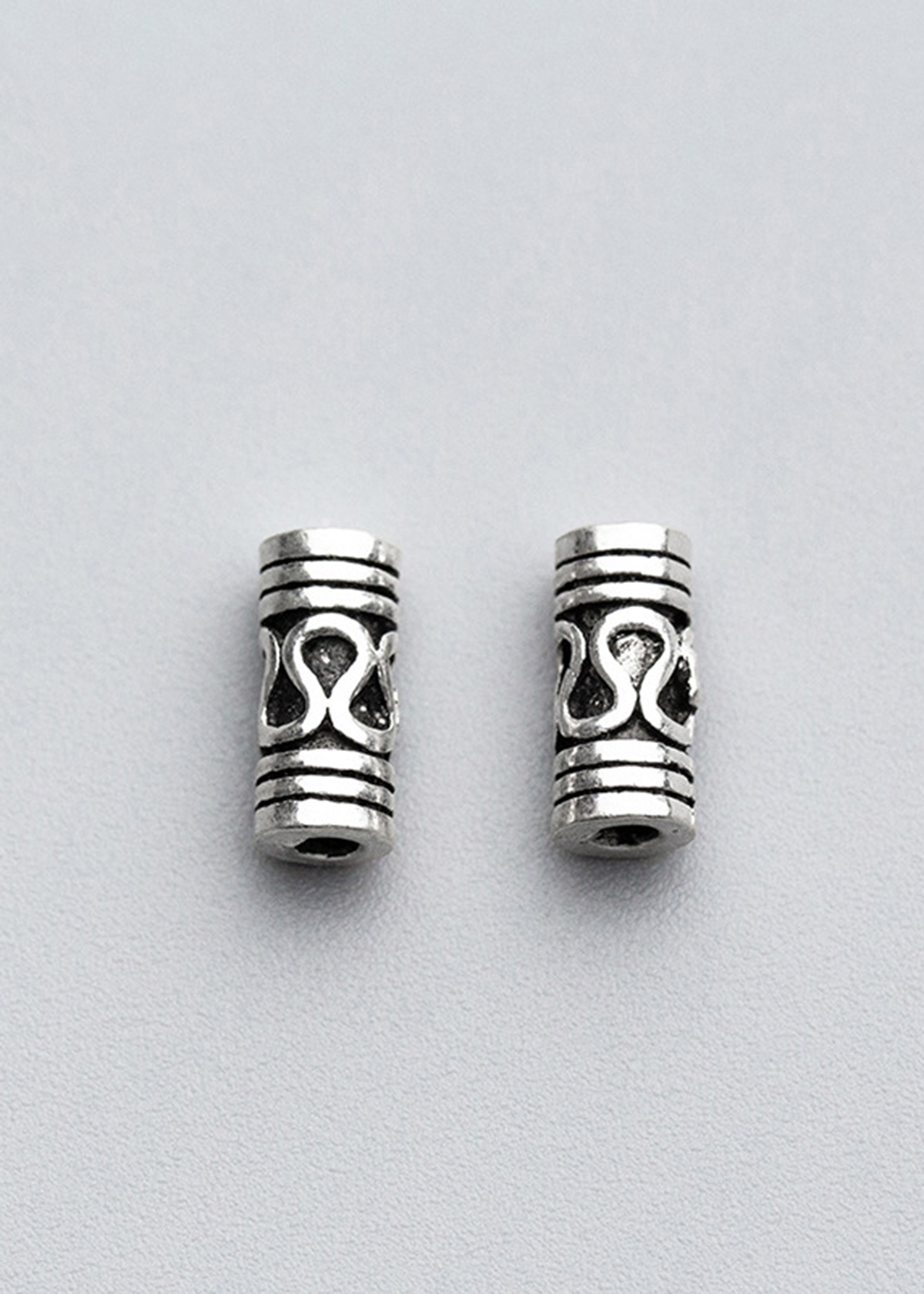 CHARM BẠC CHẶN HẠT HÌNH TRỤ HỌA TIẾT HOA VĂN: