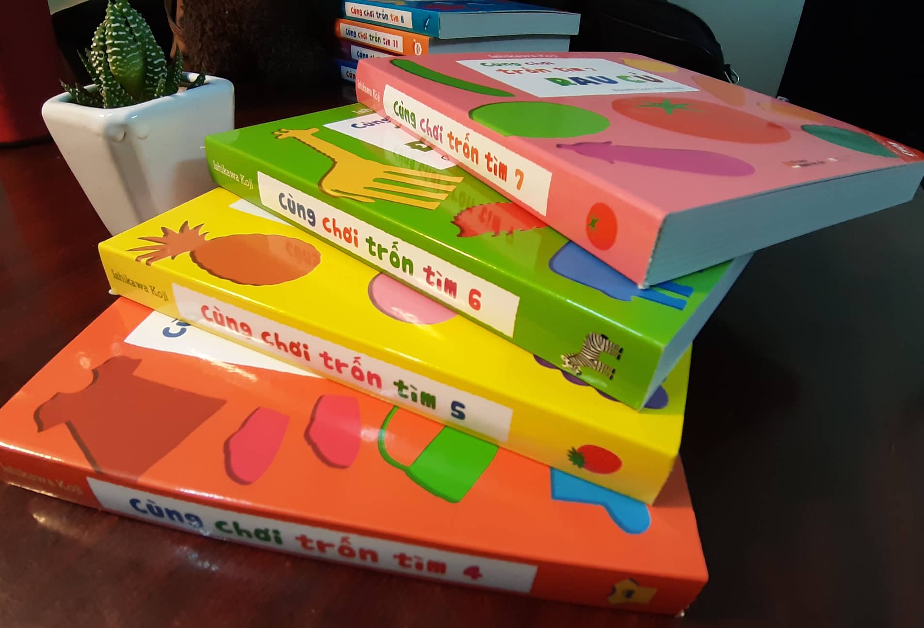 Combo bộ 4 cuốn sách Cùng chơi trốn tìm là bộ ehon Nhật Bản cho trẻ từ 0-6 tuổi gồm 4 tập, được phân theo các chủ đề động vật, hoa quả, đồ dùng, phương tiện giao thông tất cả đều quen thuộc trong cuộc sống hằng ngày của trẻ.