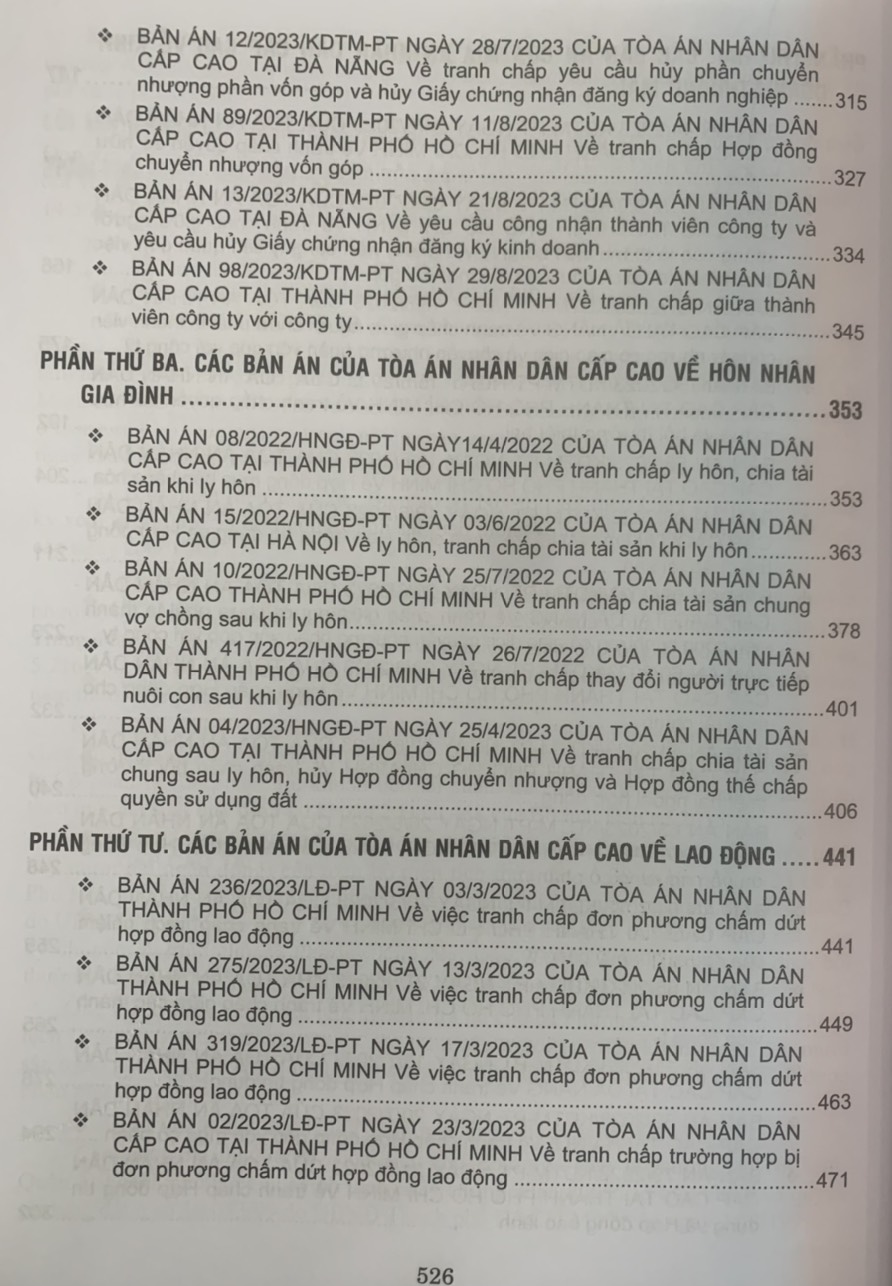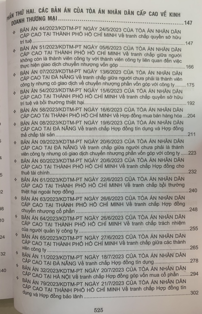 Sách Combo Tuyển tập các bản án của Tòa án nhân dân cấp cao   1.Tuyển tập các bản án của Tòa án nhân dân cấp cao về dân sự và tố tụng dân sự Tác giả: TS. TRẦN VĂN HÀ (Biên soạn) Nhà xuất bản: Thông Tin Và Truyền Thông Số trang: 560 trang Kích thước: 19x27 cm Hình thức bìa: Bìa mềm Năm xuất bản: 4.2024 Giá bìa 525.000đ 2.Tuyển tập các bản án của Tòa án nhân dân cấp cao về hình sự và tố tụng hình sự Tác giả: TS. TRẦN VĂN HÀ (Biên soạn) Nhà xuất bản: Thông Tin Và Truyền Thông Số trang: 560 trang Kích thước: 19x27 cm Hình thức bìa: Bìa mềm Năm xuất bản: 2024 Giá bìa: 535.000đ 3.Tuyển tập các bản án của Tòa án nhân dân cấp cao về quyền sử dụng đất và tài sản gắn liền với đất Tác giả: TS. TRẦN VĂN HÀ (Biên soạn) Nhà xuất bản: Thông Tin Và Truyền Thông Số trang: 560 trang Kích thước: 19x27 cm Hình thức bìa: Bìa mềm Năm xuất bản: 2024 Giá bìa 545.000đ 4.Tuyển tập các bản án của Tòa án nhân dân cấp cao về hành chính – kinh doanh thương mại – hôn nhân gia đình – lao động Tác giả: TS. TRẦN VĂN HÀ (Biên soạn) Nhà xuất bản: Thông Tin Và Truyền Thông Số trang: 528 trang Kích thước: 19x27 cm Hình thức bìa: Bìa mềm Năm xuất bản: 2024